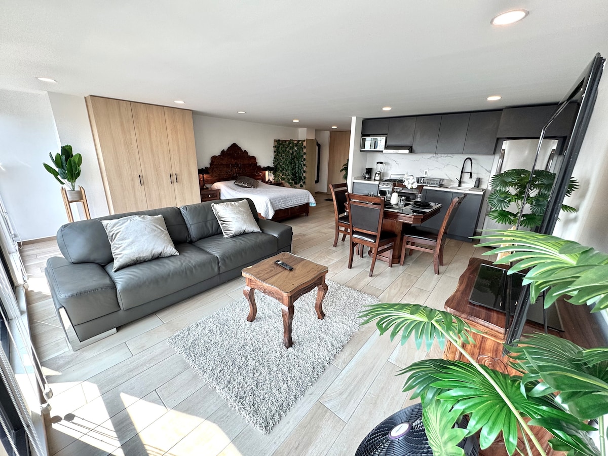 Perfect for experiencing the vibrancy of one of Mexico City’s most coveted neighborhoods, Colonia Roma –steps away from the coolest local hotspots including restaurants, bars, boutiques, shopping and cultural landmarks. This stylish one-bedroom apartment offers luxury and comfort with high ceilings, ample natural light, and modern furnishings. It features an open living area, a private terrace, and a tranquil bedroom with a king-size bed and workspace.