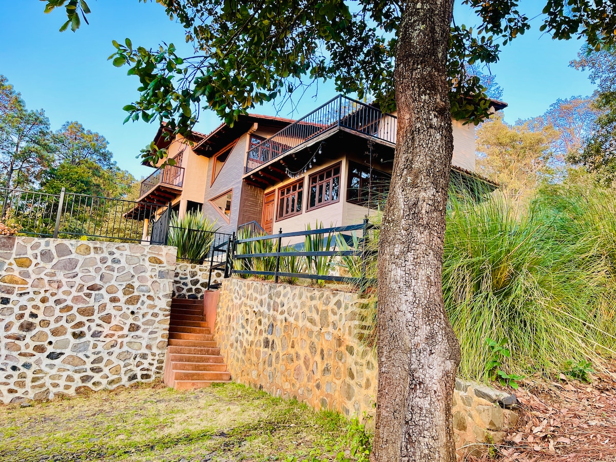 ¿Buscas olvidarte por un rato de la ciudad y del estrés? ¿Respirar aire fresco, relajarte y estar en armonía con la naturaleza? ¿O tal vez deseas aventura, deportes extremos y diversión sin límites? Encontraste el lugar perfecto. Una cabaña familiar, hogareña, privada acogedora al estilo pueblo mágico, pero sorprendentemente amplia y equipada. La cabaña está hecha toda de madera, es realmente como estar en una casa dentro de un árbol, relajante y terapéutica. con vistas panorámicas.