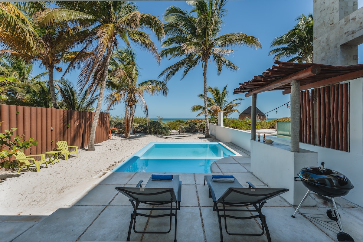 This stylish 3-bedroom, 3.5 bathroom villa is located on the beachfront in Playacar, just a 10-minute walk from central Playa del Carmen. Casa Martini offers a private outdoor pool, free Wi-Fi, a fully equipped kitchen, laundry and free parking Casa Martini features a poolside terrace with sun loungers and dining area. The lounge has flat-screen cable smart TV, while the kitchen includes toaster, fridge, microwave and coffee maker.