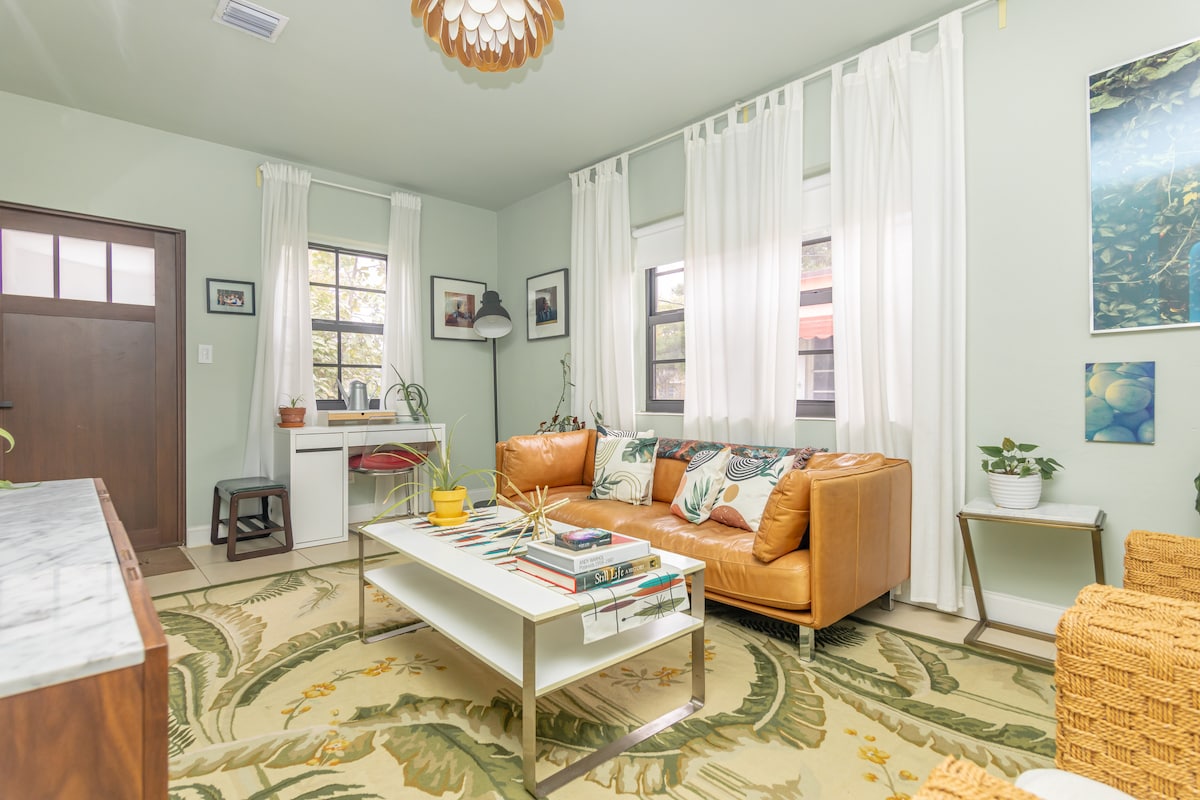 Casa Ishi, a tranquil sanctuary where art, architecture, and nature create a unique retreat. Stay in this serene haven with curated stones, soothing textures, and an intuitive design flow. From the peaceful bedrooms to the stunning "cave room," relaxation and creativity flourish here. Casa Ishi is your place to find rest, renewal, and inspiration. Note: The neighboring loft is a rental; the backyard is shared. Please be mindful of noise. Quiet hours start at 10:00 PM. MAX occupancy: 4 guests.