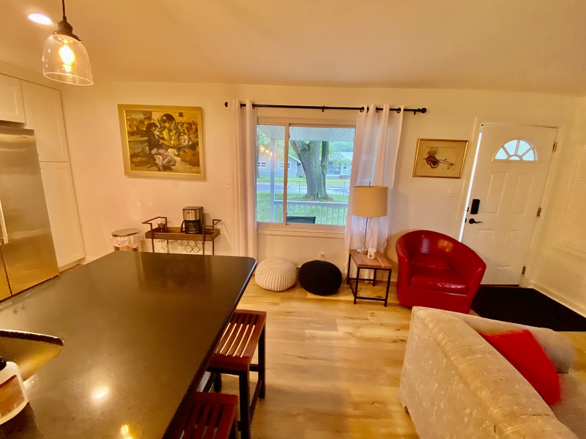 Are you ready for a getaway? The Cozy Cottage is ready for you to enjoy! This remodeled home will melt away your worries, private backyard allows for lounging, extra-curriculars, and s'mores. Convenient location near Lake Michigan ensures an endless list of fun activities! *Larger parties please inquire about our neighboring property, if dates allow both can be booked