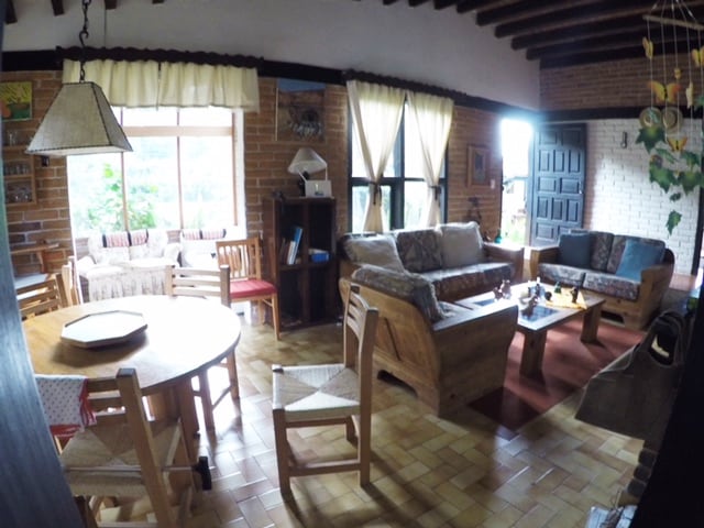 Hermosa cabaña, con espacios pequeños pero bien distribuidos, lo cual hará de tu estancia una hermosa experiencia al lado de tu familia y/o amigos, a tan solo 2kms del centro y en medio de la hermosa sierra del tigre, en Mazamitla, Jalisco. Cabaña 11 tiene 2 habitaciones y un tapanco, en una de las habitaciones hay una cama matrimonial y en la segunda habitación una cama king size y en el tapanco hay dos camas matrimoniales, cocina, refrigerador y horno de microondas, cuenta con chimenea y a su alrededor una sala con muebles típicos de la región y un sofá cama para otras dos personas, tiene también una pantalla de 32" y un espacioso baño con amplia regadera. Cabaña 11 es parte de un complejo de 15 cabañas en la sierra del tigre Mazamitla, rodeado de naturaleza y el clásico ambiente que caracteriza a esta región, estamos a 2 km del centro donde encontraras gran variedad gastronómica y actividades a realizar. Tenemos varias áreas comunes con asadores. Estamos en la sierra del tigre, rumbo al parque ecoturistico el tecolote, a un lado de las cabañas el pandito Puedes llegar en auto, taxi, moto... Contamos con nuestro propio estacionamiento.