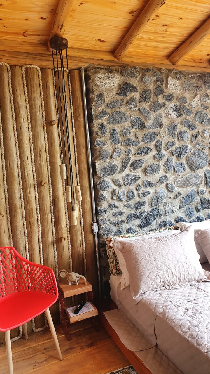 Refugio e patamar!!experiência incrível para você e amigos... um espaço com estilo rustico construída com madeiras,pedras e bambus em meio a montanha .local com altitude com vista para várias araucarias ,lagos jardins de algapantos contruidos com lindos muros e escadas de pedra para aquela sua foto etc.5 trilhas com grandes dimensões de visão.e sempre com o nosso acolhimento para voce seu pety de 8 kg .energia da naturesa em uma cabana tijolo,pedra,eucalipto, araucarias e bambus.som mágico.❤️🛖