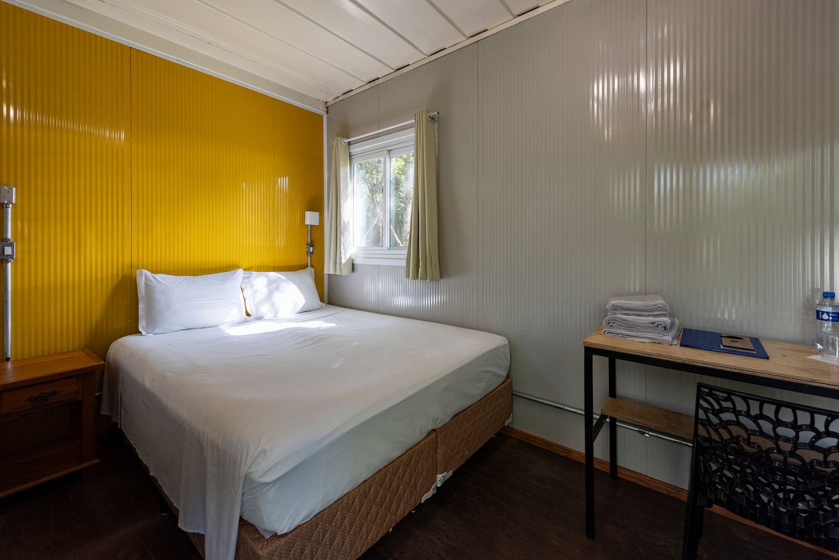 Nosso container para 2 pessoas oferece uma experiência única com vista linda, céu estrelado e tranquilidade total. Desfrute da cama de casal confortável, fogueira acolhedora e ar condicionado. O quarto tem projetor e a cozinha equipada inclui utensílios, alimentos básicos e um kit fondue para momentos especiais. Relaxe na rede de descanso e aproveite. Ideal para casais que buscam um retiro romântico e relaxante. Reserve agora e viva a magia deste lugar!