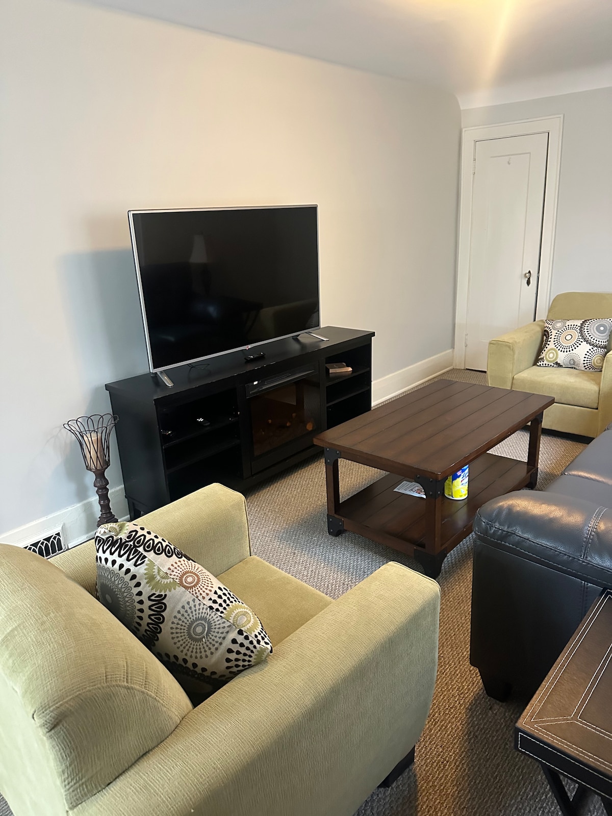 Enjoy your experience at this centrally located and charming one bedroom apartment in a historical century home. This tastefully renovated unit is spacious, equipped with a full kitchen, and dedicated workspace in the large bedroom. Conveniently features unlimited high speed internet, Smart TV, and secure keyless entry. Parking available at the back for 1 vehicle. The bedroom features a comfortable king sized bed, dedicated workspace, and room darkening shades.