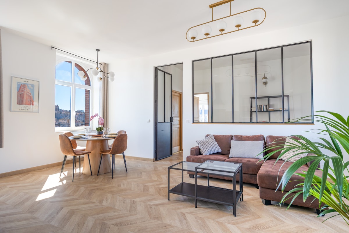 18th century apartment in area Sainte Croix & Saint Michel on quiet square. 3 minutes from riverside, five minutes from Saint Michel Tram C & D. Views of Hôtel de la Monnaie and Saint Michel tower. 70 m2 recently renovated furnished with antiques provides a modern-authentic Bordeaux experience. Kitchen fully equipped, large living and dinning room, high quality beds, spacious bathroom with bathtub and shower, free WiFi, TV, Blu-ray, and espresso machine.