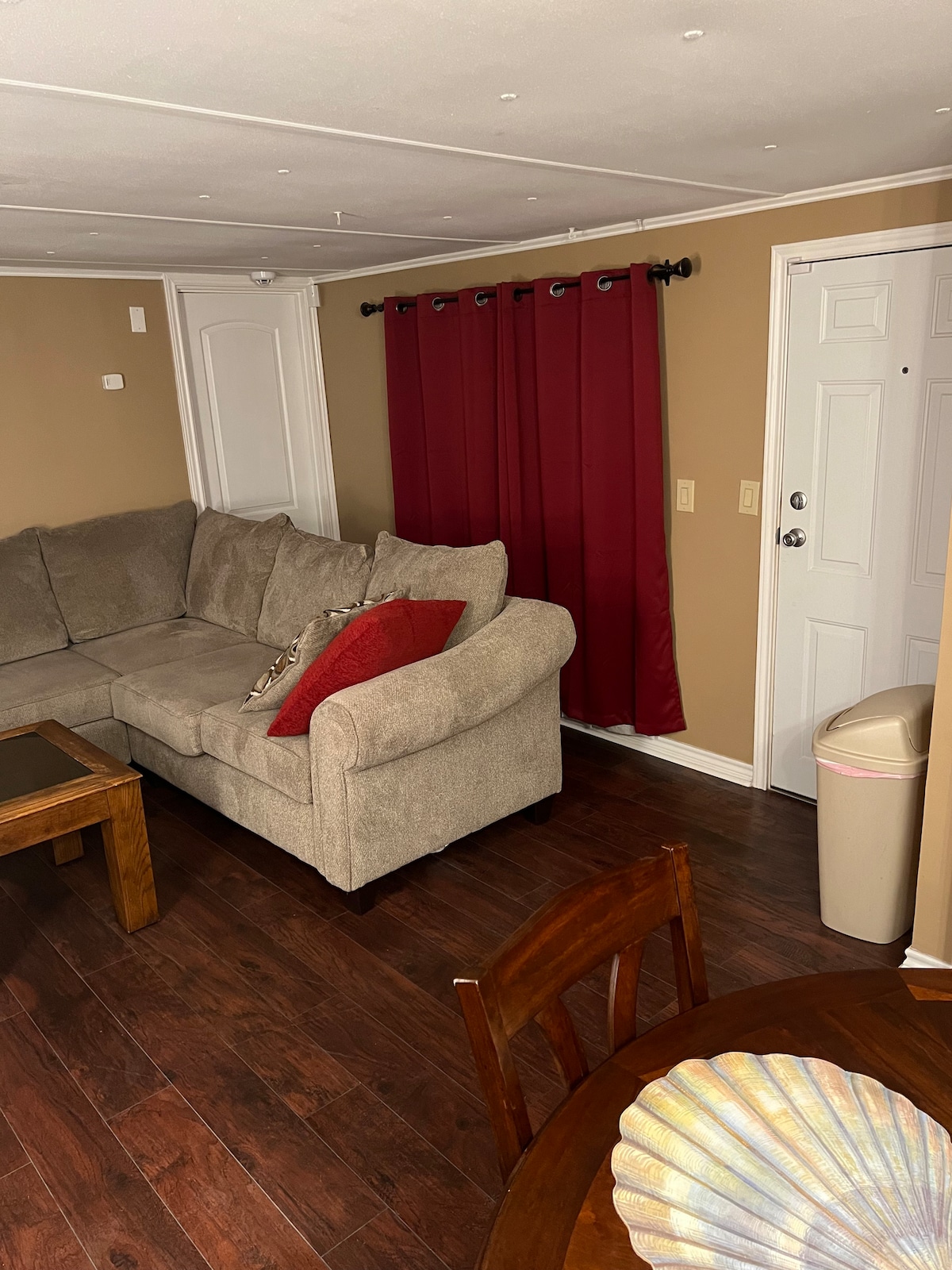 Cheery apartment with a fully equipped kitchen to whip up a great meal or dine out at one of the near by restaurants. Then relax in one of the comfy beds, with a T.V. in every room. After, enjoy a cup of coffee or tea from the coffee bar. Shopping centers near by and just about 5 minutes from downtown.