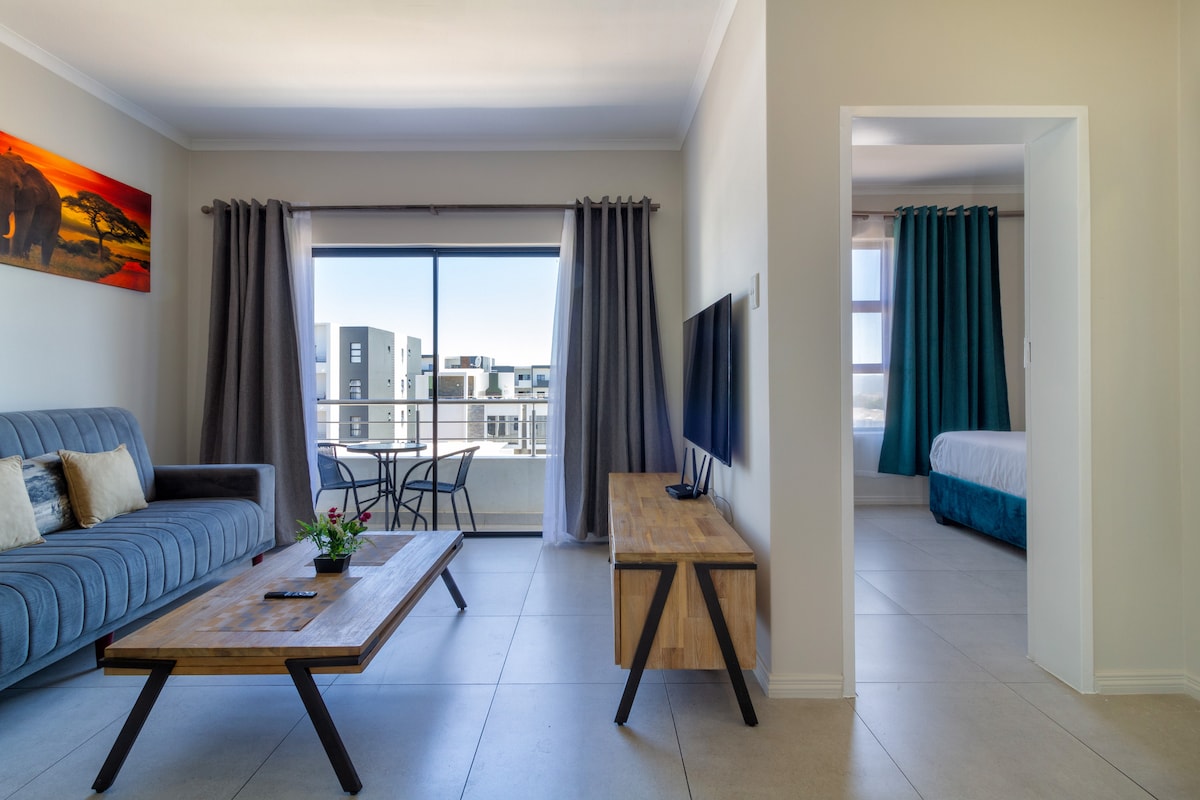 Riviera Château de Rêve – Phoenix's Gîte @ Ellipse Waterfall. Luxury 2-bedroom apartment with breathtaking views, spacious living, top-tier finishes. Features: balcony with comfy chairs, sliding doors, Smeg kitchen, 75" Smart TV, Disney+, Netflix. Amenities: Life Day Spa, TriFit Gym, Luna Club, gyms, parking, fast wifi. Near Mall of Africa, Netcare Hospital. Business & leisure blend in a vibrant community with iconic architecture & luxurious amenities. Lifestyle exceeds expectations 😊