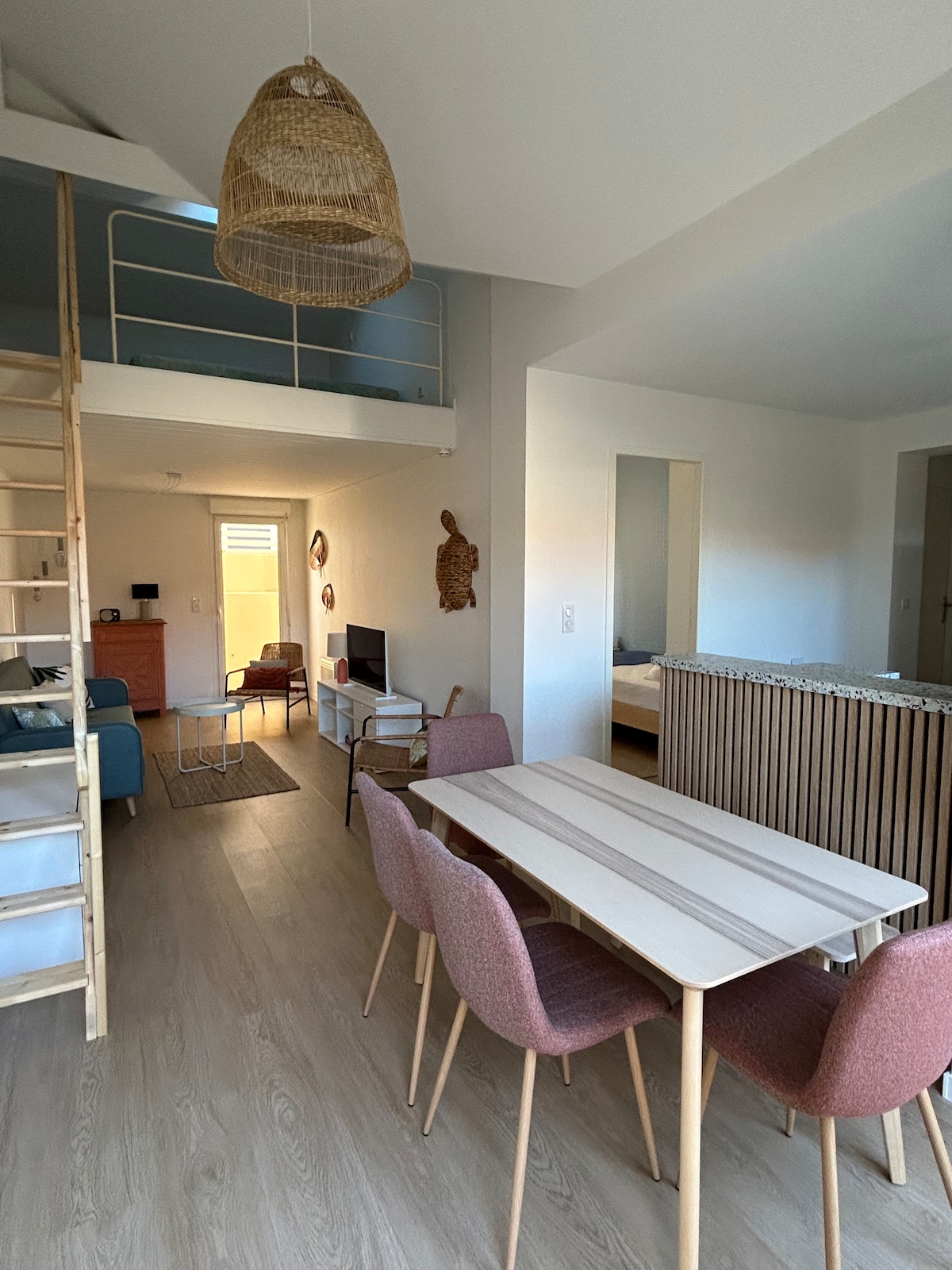 Profitez d'un logement élégant et central à Mimizan Bourg avec un accès direct a la piste cyclable pour rejoindre rapidement Mimizan plage. Petite maisonnette de 50 m2 sur notre propriété pour 4 personnes avec 1 grande pièce à vivre (wifi + box TV + clic-clac), une cuisine équipée, une salle de bain avec douche, d'une chambre avec 1 lit 2 places et placard, de toilette séparée et d'un espace à vivre à l'extérieur avec plancha.