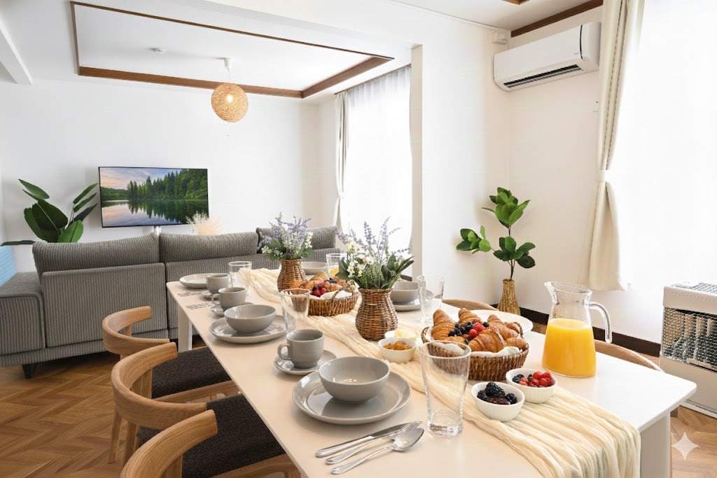 “Kan Tarou Monetarou 的母家” 2023年12月开业 ★ 3LDK,2个洗手盆,1个厕所,1个浴室,1个厨房 ★ 停车场:室内1个,室外4个 ★ 婴儿设施:婴儿床,婴儿椅 我们新开设的住宿经过全面翻新,拥有温馨而现代的室内设计,提供一个适合所有年龄段放松的空间。配备舒适的床上用品和丰富的设施,让您远离日常生活,享受宁静的时光。 距离富良野滑雪场仅12分钟车程,冬季是滑雪旅行的理想选择,夏季则可以欣赏到盛开的薰衣草花田,四季都能体验到北海道自然之美,地理位置优越。 我们特别推荐家庭入住!我们为孩子准备了玩具,为年幼的孩子提供了尿布、婴儿洗发水、便池座圈和防尿床单等设施,让有小孩的家庭可以安心入住。 此外,您还可以在屋主精心设计的走廊上欣赏日本庭园,夜晚可以一同欣赏满天星空。我们真诚地欢迎您的到来,让家人、朋友和同事们在这美丽的环境中共同度过特别的时光。 在富良野的大自然中,享受一个美好的假期!