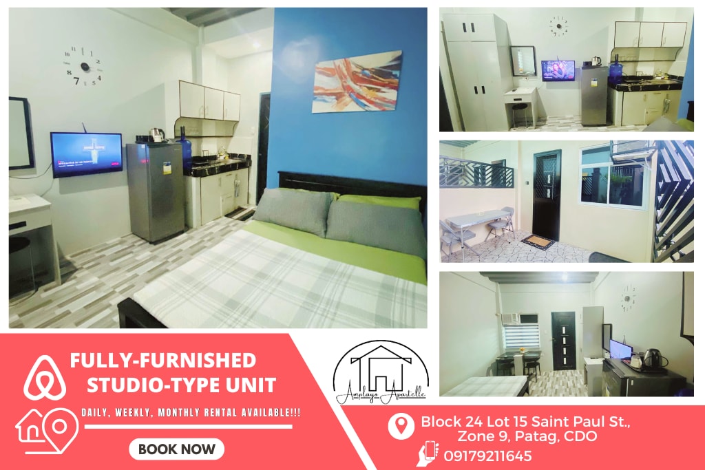 Escape to your own private getaway in Cagayan de Oro City and discover a mix of modernity, affordability, and accessibility... Highlights: ✓ Gated with a balcony ✓ Self check-in ✓ Fully-functional kitchen ✓ twin-size beds with extra foam ✓ fully-airconditioned room ✓ CR with H&C shower and bidet ✓ Dining table and chairs ✓ 32" Smart TV with Netflix and other streaming services ✓ High-speed Wifi (up to 200 mbps) ✓ Parking area exclusively for guests ✓ CCTV 24/7 Security