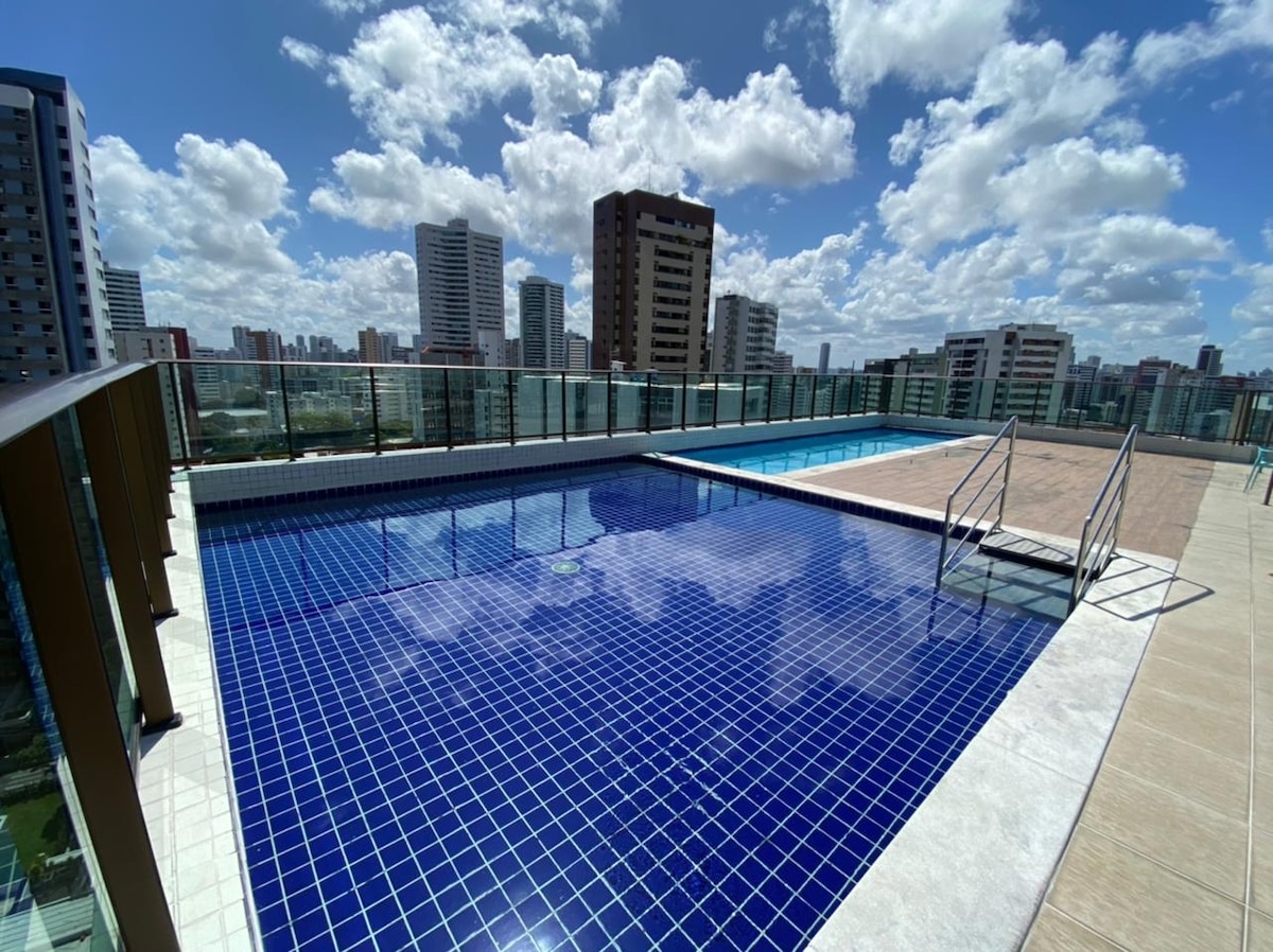 Bem-vindo ao seu refúgio no coração de Recife! Aproveite tudo o que o espaço oferece: 🏙️ Vista incrível: Da cidade e parcial do mar. 🛏️ Conforto absoluto: Quarto com cama de casal aconchegante e ar-condicionado. 📺 Entretenimento: TV Smart para noites de filmes. 🍳 Praticidade: Cozinha completa. 💻 Produtividade: Espaço confortável para trabalho. 🏊♂️ Lazer exclusivo: Piscina e academia na cobertura.