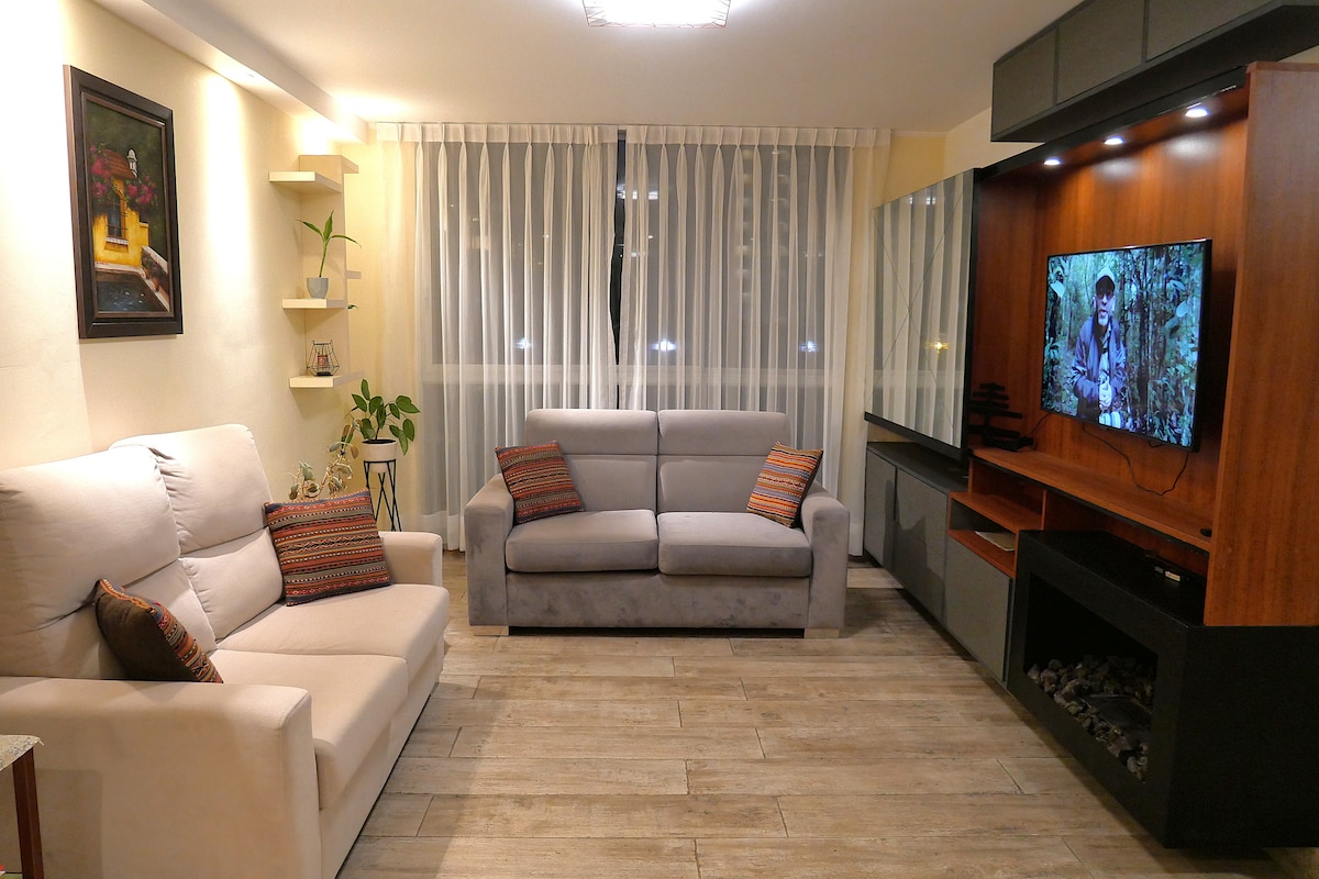 Ideal for long stays. The best stay for executives or couples. Located in the best business area of Lima, with everything at your grasp!. Within walking distance of banks, restaurants, cafes, shopping, entertainment centers, bus stops and more. Early check-in subject to availability. Enjoy a cozy, very illuminated apartment, with all the comforts to remote work and rest. In a modern building with 24-hour reception, gym, swimming pool in one of the most beautiful and safest areas of Lima.