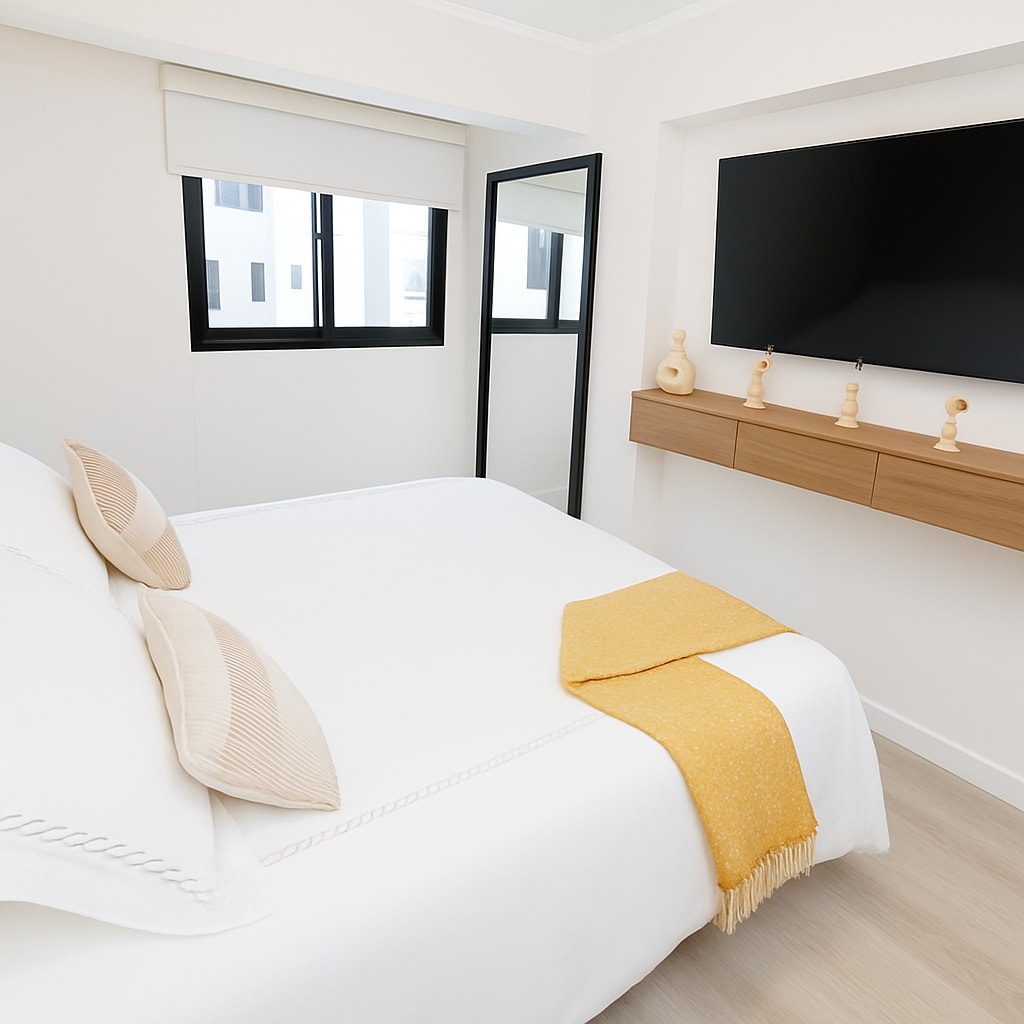 🛏 Loft Distribution: • Master Bedroom: Relax in a comfortable and spacious Queen bed, we have a closet, TV. Perfect for two people🧍🏻🧍🏻. • Cozy Living Room: A perfect space to disconnect. • Fully Equipped Kitchen: Prepare your meals with ease, it has the necessary appliances. • Full Bathroom: Bathroom equipped with amenities. 📸 Discover the beauty on our ig: @vibrant.homesperu