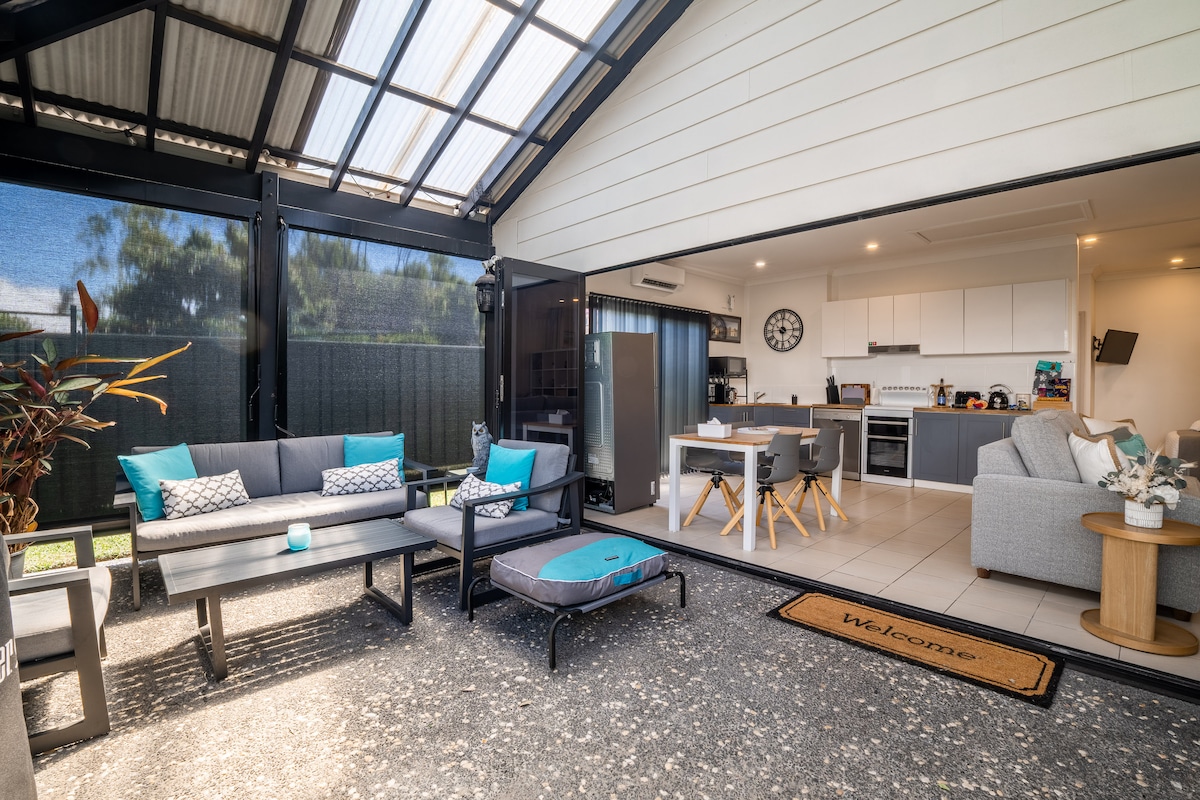 Escape the city! Only moments from the beach & lake, Ocean Breeze offers privacy & comfort. Enjoy a relaxing stay at our immaculate & modern apartment (attached to house but totally self-contained). Simply a couple of minutes walk to the beach, lake and eateries. Free WiFi, Netflix, Stan & A/C. Off-leash dog beaches are nearby, house-trained pets are welcome ( a one-off fee applies) but there is no fenced off-yard. The perfect getaway for couples or families/friends and fur-kids!