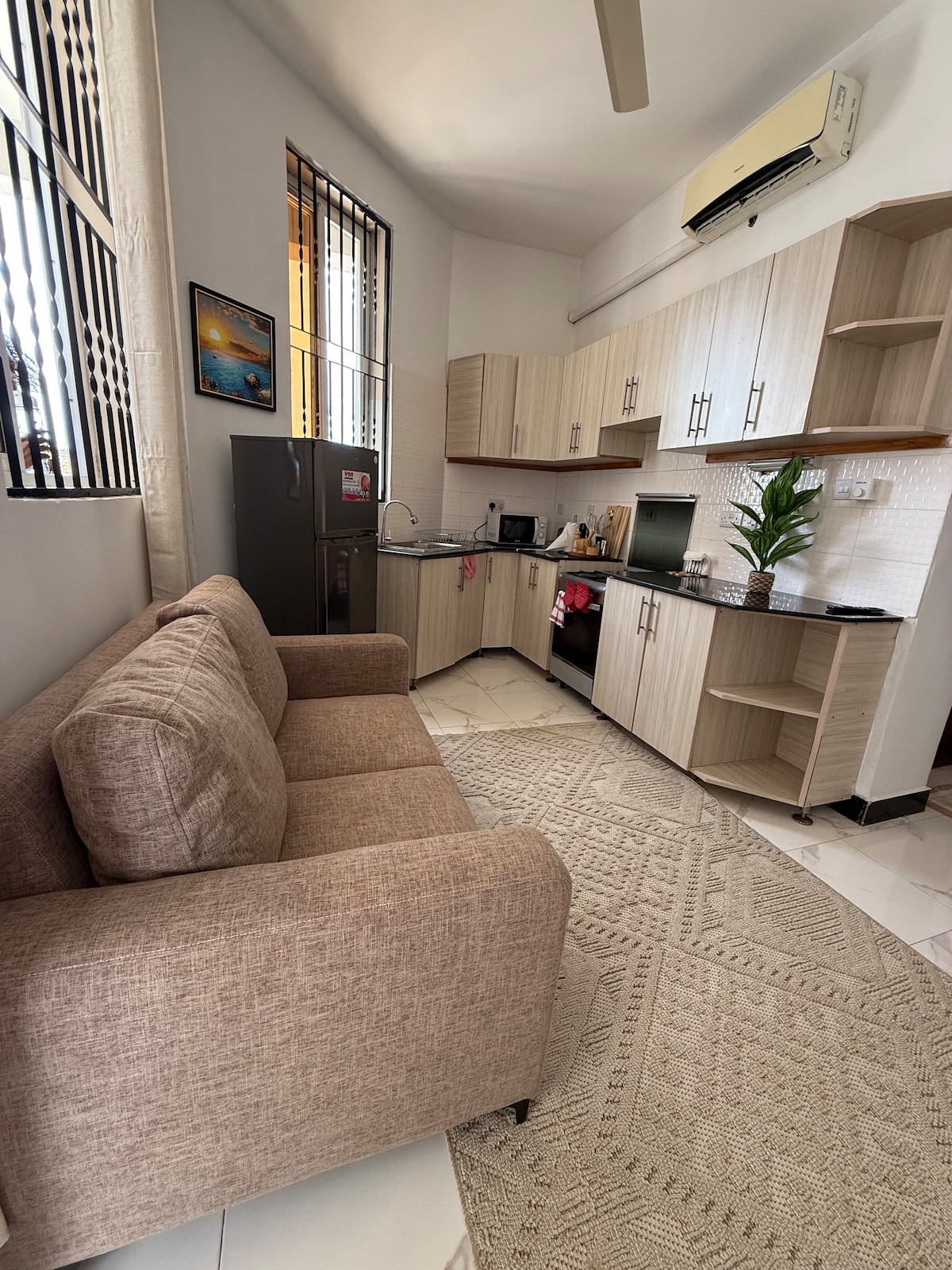 Discover this tranquil studio apartment in the shores of Zanzibar, perfect for young families, couples, or solo travelers seeking a peaceful escape. 4mins walk to beach & pool 15mins from Airport 20mins from Town/Zanzibar Ferry The place is peaceful, yet close to all amenities, beach, restaurants, cafes, supermarket, ATM, medical clinic, access to swimming pool, WiFi & play ground. Note: Pool & beach are 3mins walk away, not directly facing the unit