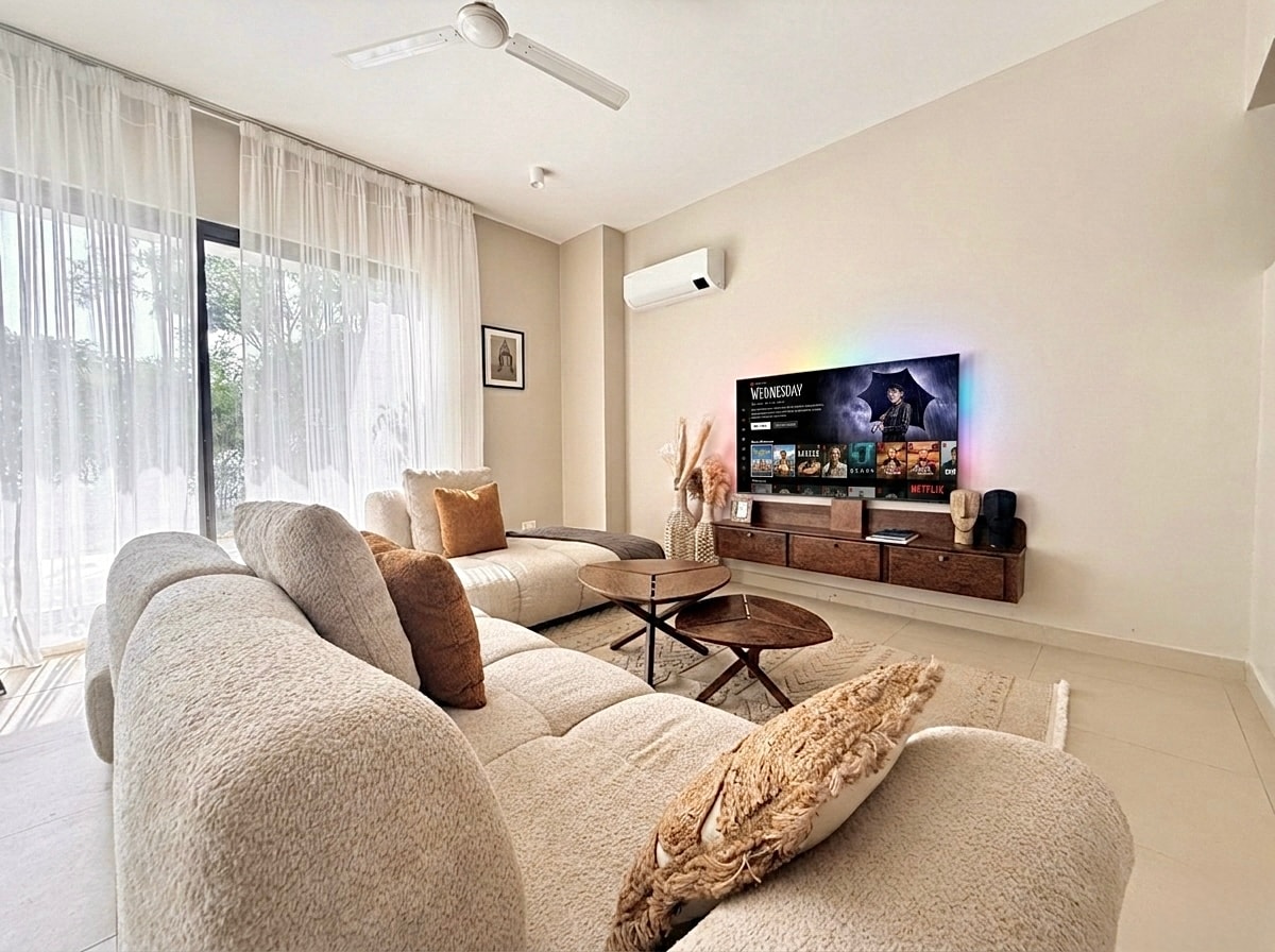 The villa is ideally positioned directly in front of a golf course, offering open green views, refreshing breezes, and a serene environment. It’s perfect for golf lovers or guests who appreciate space, privacy, and tranquility. It is beautifully designed and features 4 spacious bedrooms and 4 modern bathrooms, making it ideal for families, groups, or longer stays. The home is fully furnished and thoughtfully equipped to provide comfort and convenience, allowing guests to relax and feel at home f