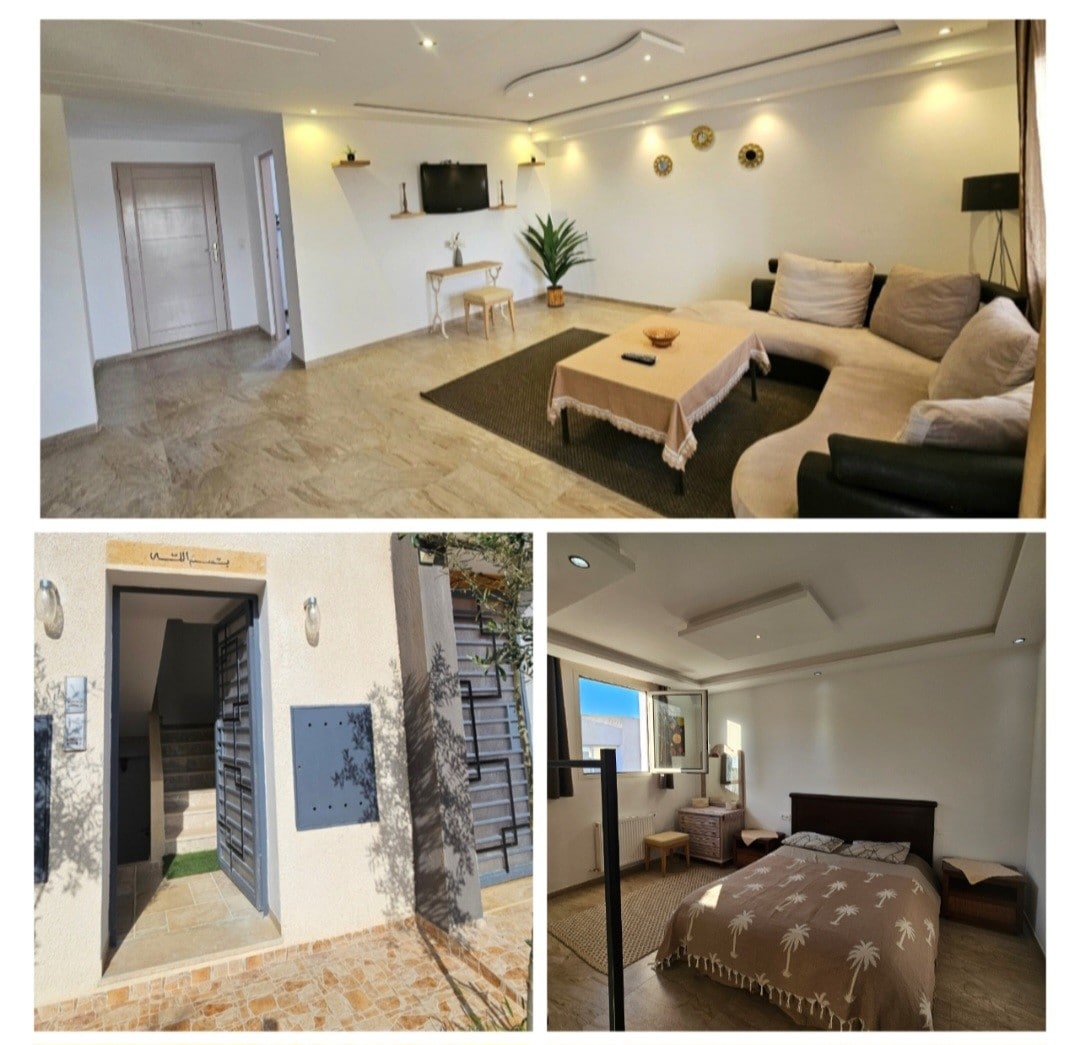Logement S+2 pour familles👨👩👧👧 ou couples marié uniquement 👫 Situé bas route skanes à 5 minutes en voiture du centre ville, plage et aéroport - A 3 minutes à pieds vous trouverez la route principale avec épicerie, café, pizzeria et transports en commun. - plage les palmiers à 4 minutes en voiture ou 15 minutes à pieds, grande balade falaise bord de mer à faire. -parc aquatique à 5 minutes en voiture -à 3 minutes en voiture vous pourrez admirer les flamands rose sur le lac de Monastir.