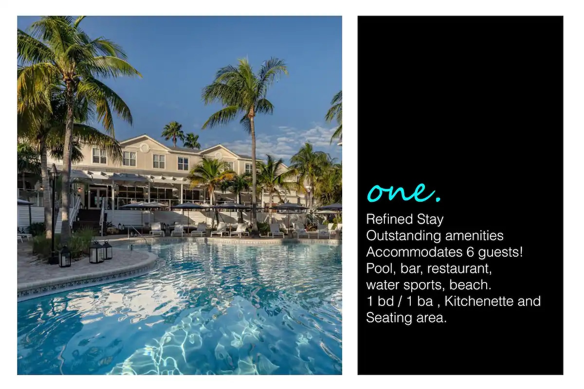 This unit is a Luxurious Suite in a Elegant desired Resort . • Pool with poolside dining and bar. • Onsite watersports, fitness center and nearby Key West attractions • 1 Bedroom Two Queen Suite • Exclusive white-sand beach out of your hotel • Luxurious bath products, Free parking and wifi. ***** Guests must be 21 y/o or older, There is a Resort fee of U$U$54 + tax per night , paid directly on the resort.****