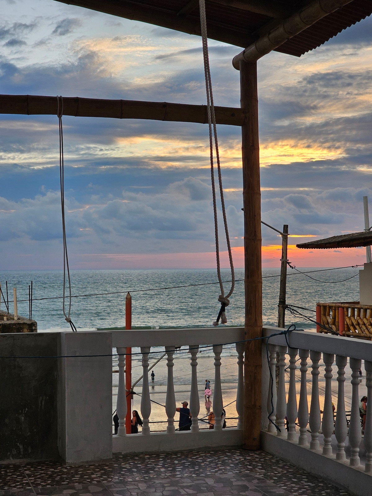 This tranquil air conditioned apartment is on the beach with kitchen and office, and generator backup for power and WiFi, perfect for digital nomads. The second floor is an open air area with bbq, tables, chairs, hammocks and a beautiful view of the ocean. Third floor balcony for sunbathing. Gated property with secure parking, a fire pit next to the apartment and one more on the beach. 5 minute walk to the restaurants of Manglaralto and 15 minute walk on the beach to the nightlife of Montanita