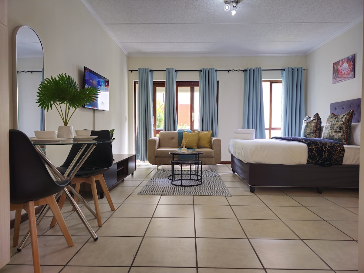 Escape loadshedding at our studio in the heart of Dainfern. The studio features: - Lights that work during loadshedding - WiFi that works during loadshedding - Smart TV with Netflix for you to unwind The studio is located within a secure and peaceful complex behind Dainfern Square, offering our guests convenience and comfort in a setting just steps away from the vibrant city life. This studio is ideal for business and leisure. Book now, you found the perfect place!
