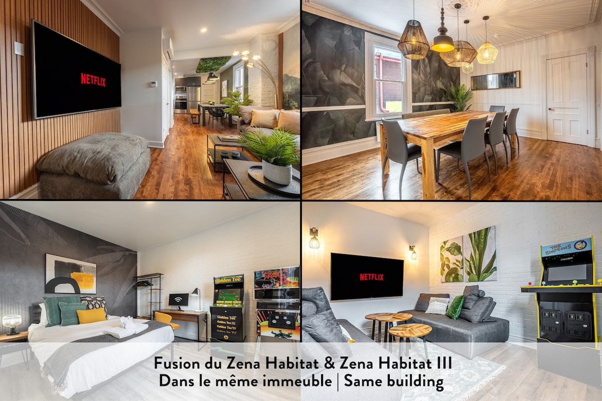 Enjoy life to the full in the heart of the Hochelaga-Maisonneuve neighborhood. ➳ Magnificent terrace with benches ➳ Only an 8-minute walk from Préfontaine metro station. ➳ Ultra high-speed Wi-Fi ➳ Parking available on request ($) ➳ 2 bedrooms with king beds ➳ 2 rooms with 2 Queen beds ➳ High chair available at all times ➳ Renovated bathroom with large shower ➳ Washer and dryer ➳ Fully equipped kitchen ➳ Living room with electric fireplace and smart tv