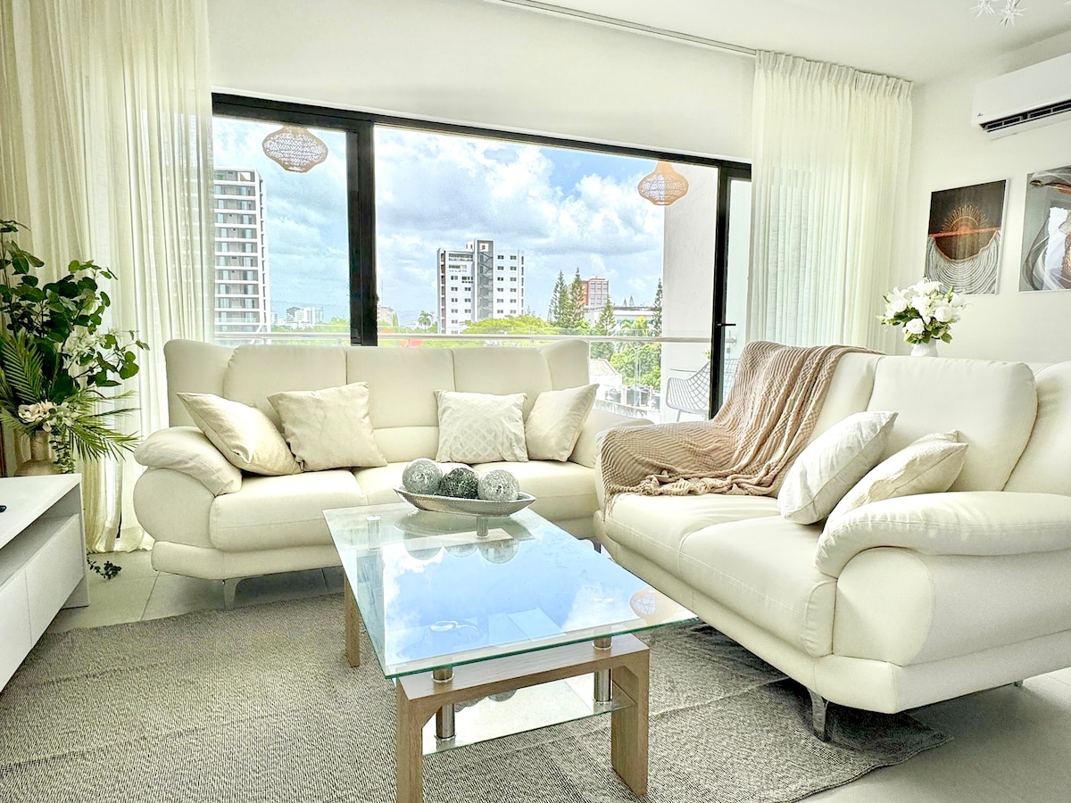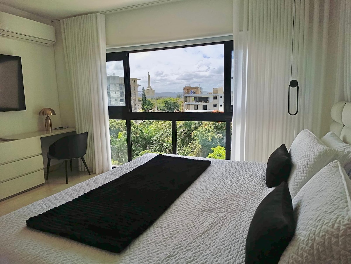 Modern one-bedroom Airbnb apartment thoughtfully curated & beautifully decorated with a minimalist design approach. Perfect for a couple or single travelers! Located in the heart of the city of Santiago De Los Caballeros, Dominican Republic. Near to the center of the city: Monument, malls (Agora Mall), restaurants, bars, hospitals and shopping. Everything you need will be less than 5 minutes away. 15 min drive from the STI Airport.