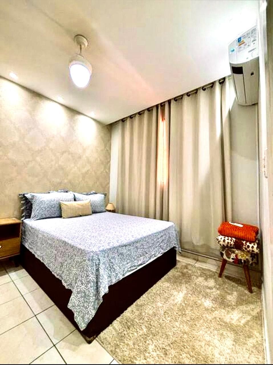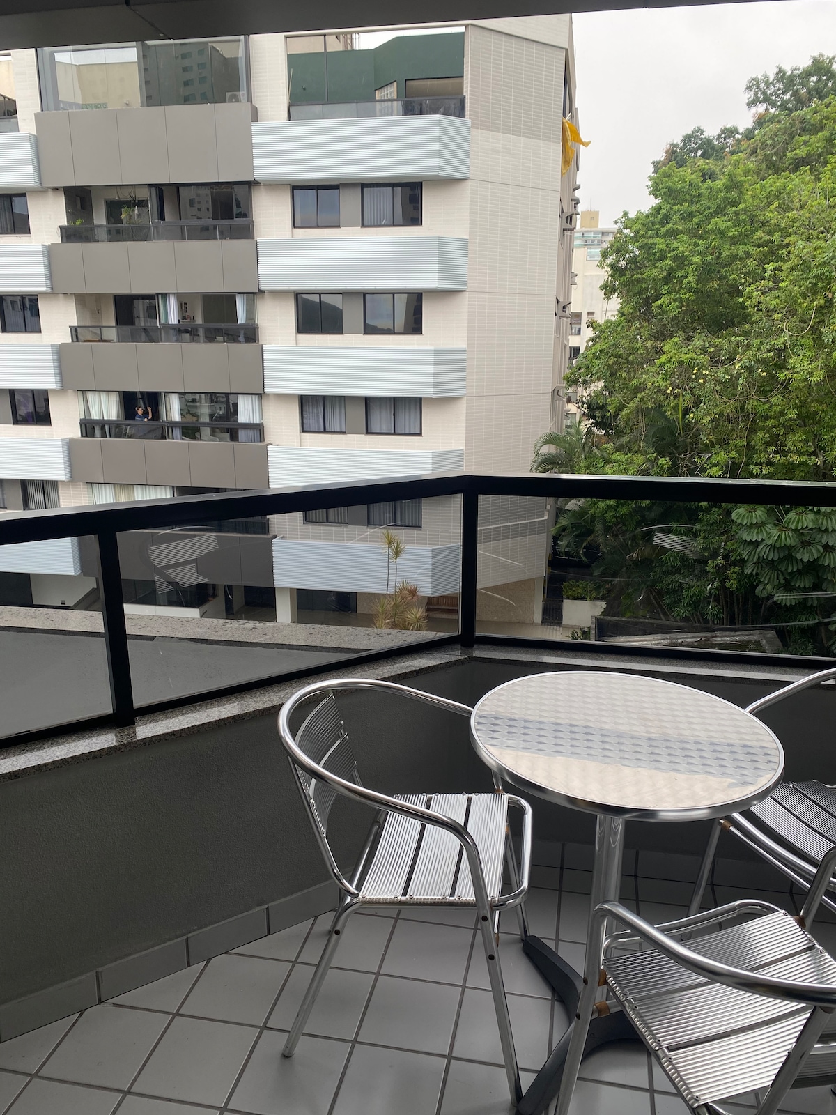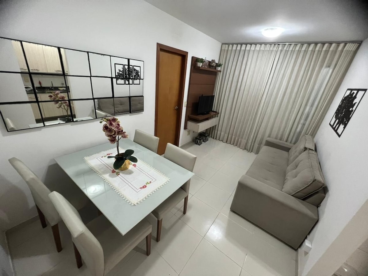 Ar condicionado Split nos 2 quartos; TV em todos os cômodos (na sala de 55" com HBO Max e Prime Video e TV nos 2 quartos de 50" e 40") 3 quadras do Mar/Orla de Itaparica (7 minutos a pé) Garagem Frente do condominio tem farmácia, padaria, restaurante, pizzaria 3 supermercados grandes a 700m 3 ventiladores de teto (2 quartos e 1 sala); 1 colchão casal queen; 1 colchão casal normal; secador de cabelo; cafeteira eletrica; liquidificador; Airfryer, rack para trabalho; cadeira escritório