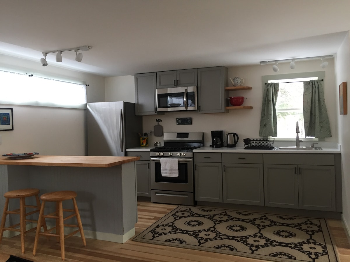 The Ferrykeeper’s Cottage is a light filled oasis, surrounded by water, meadows & views of the famous Eggemoggin Reach. Our cottage offers handcrafted counters, stone sinks, & oceanic tile to create a unique setting. 3 houses to the beach. Borrow a kayak & explore our shore. Property borders Scott’s Landing - a treasure trove of birds, sand dollars, porpoises, seals & a family of foxes. *Queen bed + flip down sofa (latter suitable for 1 adult OR 2 small kids)