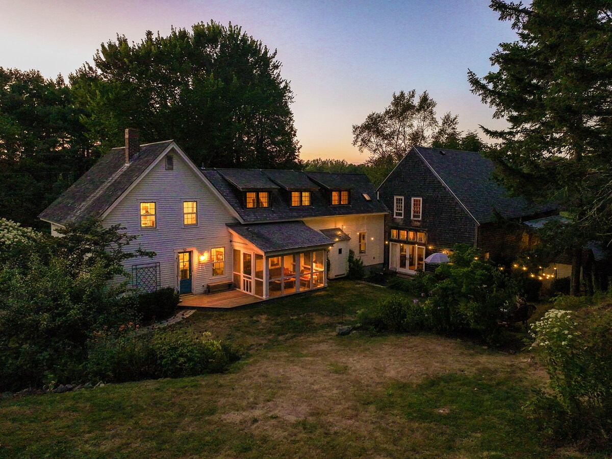Wood‑clad cottage tucked among rhododendrons on Mount Desert Island—10 min to Acadia, 15 min to Bar Harbor. Sleeps 7 (2 queen beds,2 twin beds, sofa bed). Sun‑soaked pine-clad dining room with telescope, stocked kitchen, smart TV, fast Wi‑Fi. Mini‑gym, board games, Pack ’n Play crib, sound machine, high‑chair, kid table. Deck, grill, fire‑pit, hiking poles/backpacks, paved drive for 3 cars, and Universal EV charging station. W/D, self‑check‑in. Pet-friendly. Perfect for families & friends.
