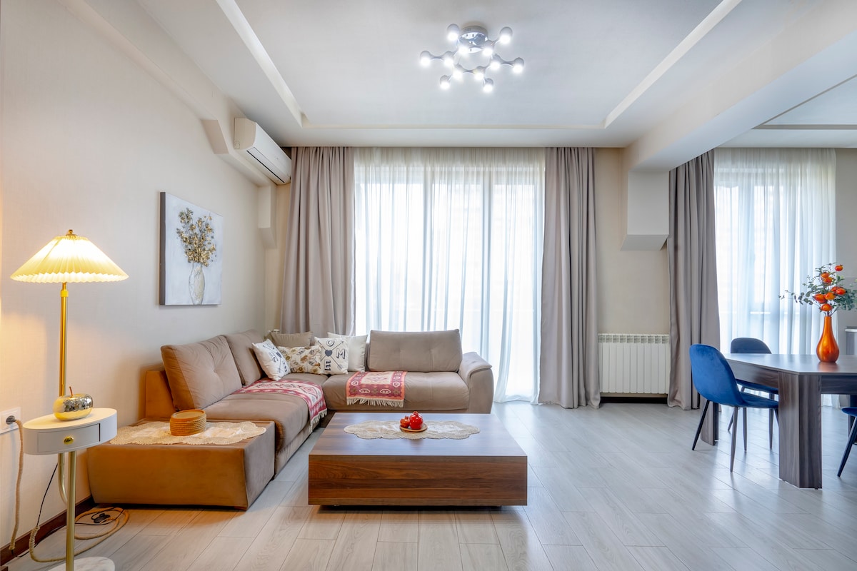 Comfortable, cozy and bright apartment . The apartment is equipped with all necessary modern amenities. Just have a rest, drink delicious coffee, work, walk around and spend wonderful time. Nearby there is almost everything for your needs. Welcome. CLOSE TO APARTMENT Shopping mall, Tbilisi Sports Palace, supermarkets, Magti, pharmacies, parks, cafes, restaurants. Metro "Technical University" Bus stops Taxi ✈ AVAILABLE TRANSFER SERVICE - Airport < - > Apartment, Trips