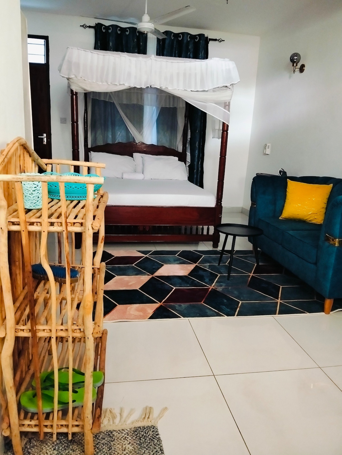 Escape to the coast and experience Mombasa like a local in this cozy, affordable studio tucked just minutes from the beach. Thoughtfully furnished with locally crafted materials from carved Swahili woodwork to handmade sisal this space offers a warm, authentic taste of coastal Kenya. This studio is a perfect blend of comfort and culture. Ideal for solo travelers or couples looking for a true Mombasa Experience. This charming hideaway is the perfect base for your Mombasa adventure!