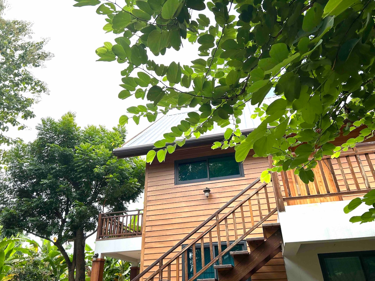 嗨!欢迎您来我家做客。我们很幸运地在市中心附近有一个大院子。这个木屋特别适合都市人来做短暂休息和放松,这里有非常适合放空的大花园和13米长的泳池。房子设计理念来自传统泰北农村的兰纳谷仓(二楼卧室、一楼存放生产资料、厨房及休息空间),我们在此基础把传统的房子改成更高空间、拥有更多采光,也在楼上楼下都配有洗漱卫生间。同时我们非常喜欢日式房屋内装的简约,所以做了融合。此外,房子里的古董家具和摆设都是我们过去几年在清迈所淘来,有些刚好和房子非常搭配,就随心地布置了。房子里的艺术画作均来自我孩子的父亲,他是本地艺术家。 如果您预定,将会使用整栋房子及花园和游泳池,房客会有独立的入口,另一侧是房东居住,因花园足够大,两个房子之间有20-30米距离,彼此都有足够的私密性。 抱歉,我们暂时不分开预定房间。 厨房提供全面的烹饪工具和厨餐具,还有洗衣机和烘干机。我们平时生活状态比较灵活休闲,周末可以带房客练瑜伽、徒步爬山、一起逛菜市场做泰餐、或一起玩水彩画画,如有兴趣,请主动给信号哦!