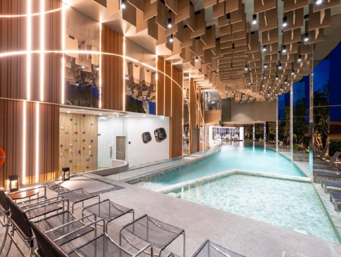 Free airport transfer,近地铁和夜市,豪华电动沙发,超大泳池,高级健身房