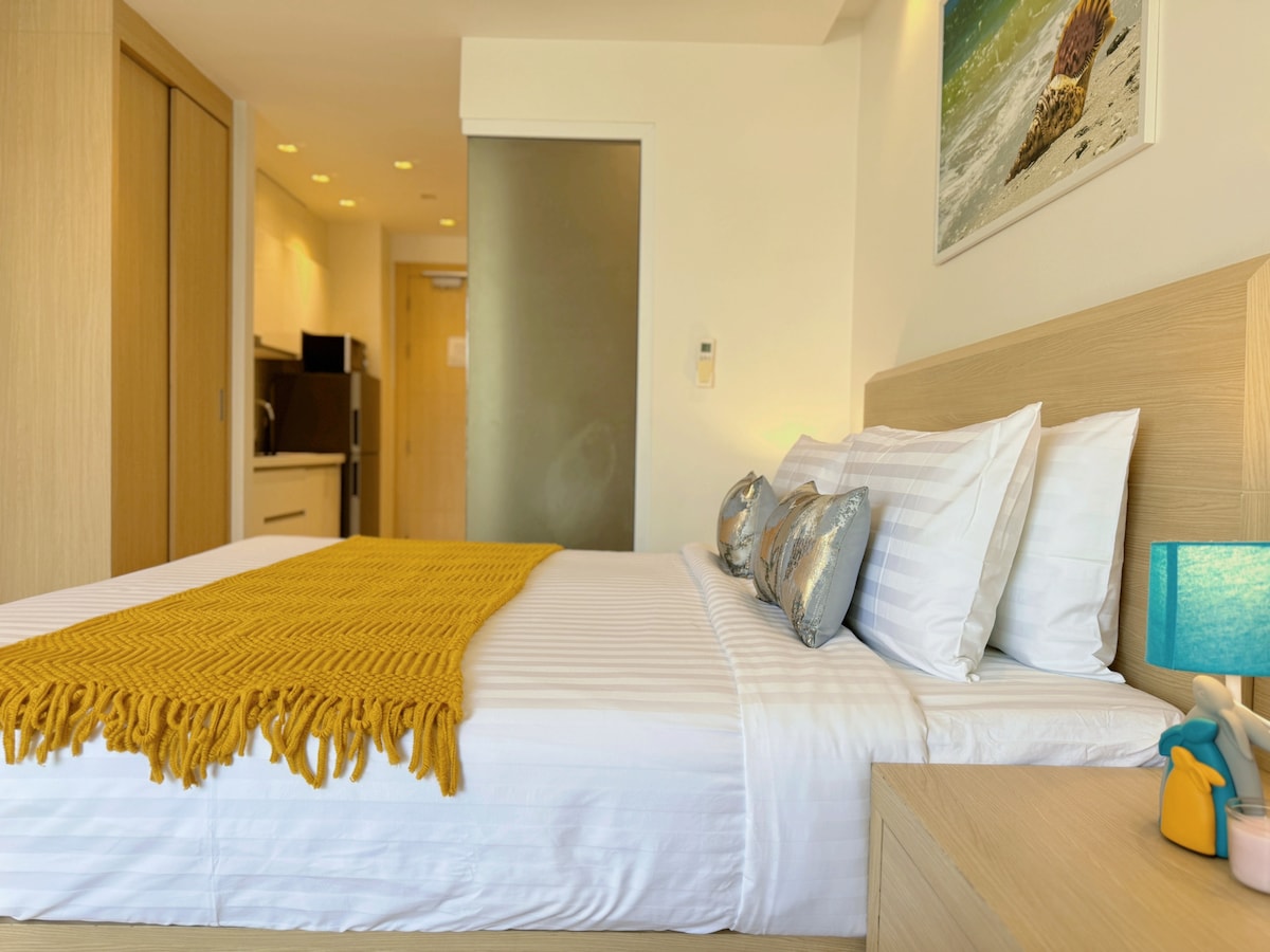 公寓介绍: 我们的公寓位于普吉岛最南端的拉威海滩 公寓三面环海 阳台可观看泳池,享受度假的乐趣 距离拉威海滩300米(rawai beach)步行5分钟。 距离奈汉海滩(Nai harn Beach)车程5分钟 距离神仙半岛2公里(5分钟车程) 距离yaniu Beach (5分钟车程) 距离查龙码头chalong(10分钟车程) 距离拉威海鲜市场开车10分钟 公寓周边步行5分钟即可到达711便利店,海边餐馆 ,(泰式按摩)massage店。 公寓配备健身房,无边泳池,儿童贵宾乐园 ,儿童水上乐园,餐厅 ,泰式按摩,星巴克咖啡厅,泳池bar 公寓水系环绕,配有6个游泳池。 无论您是情侣旅行、独自飞行,还是与小孩一起享受家庭度假,这套公寓都是您的完美选择。 此外,作为房客,您可以使用所有度假村设施,确保您的住宿尽可能愉快和难忘。 马上预订,亲身体验普吉岛拉威的美丽和宁静!