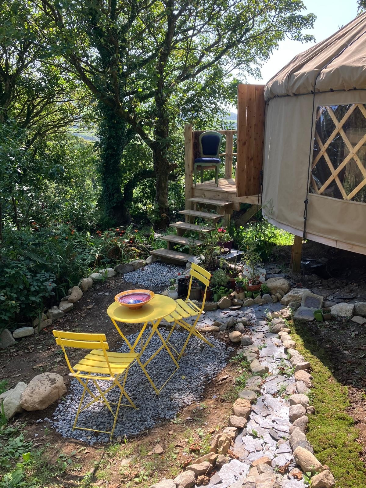 This beautiful yurt has its own little garden area and has distant sea views. It is set in our garden of the old farmhouse we are renovating as naturally as possible. This does mean there can be disruption around the house from time to time during the day but the location is stunning and is only 5 km to Bantry town. We are offering the yurt at a very low rate because of this. There are many attractions nearby, lakes,the ocean, stone circles and many beautiful walks