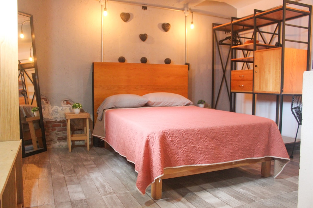 Espacioso y cómodo departamento-loft con diseño oaxaqueño contemporáneo. El apartamento está ubicado a sólo 3 cuadras de la plaza principal llamada Zócalo y 3 cuadras del templo de Santo Domingo de Guzman. A pasos de famosos restaurant multi premiados, galerías de arte, cafés y el bello andador turístico de la ciudad. Desde aquí podrás llegar andando fácilmente a todos los atractivos turísticos que la ciudad te ofrece.