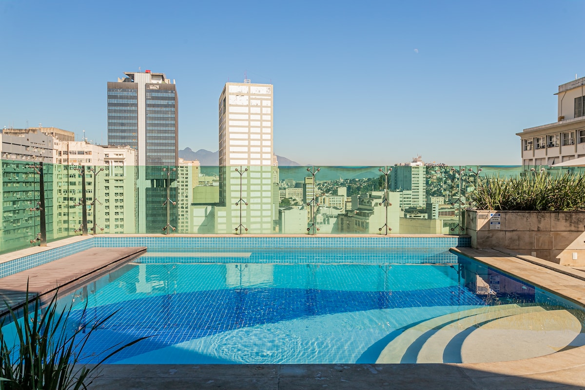 Rio de Janeiro中心的全套工作室,配备游泳池、健身房和空调
