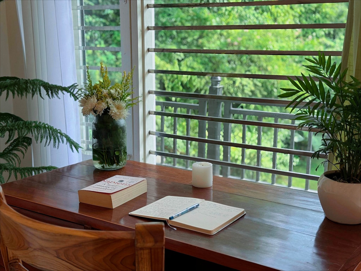 A serene 3BHK retreat designed for those who crave a raw, authentic connection with nature. From the rear side, lush greenery and soft forest backdrops create a calming view. Guests can cook their own meals in the functional kitchen, share laughter in the living area, or simply retreat into silence with a book and a cup of tea. ❌ Only Boys Group ❌ Music beyond 10 PM ❌ Party ( we are open for mindful get togethers)