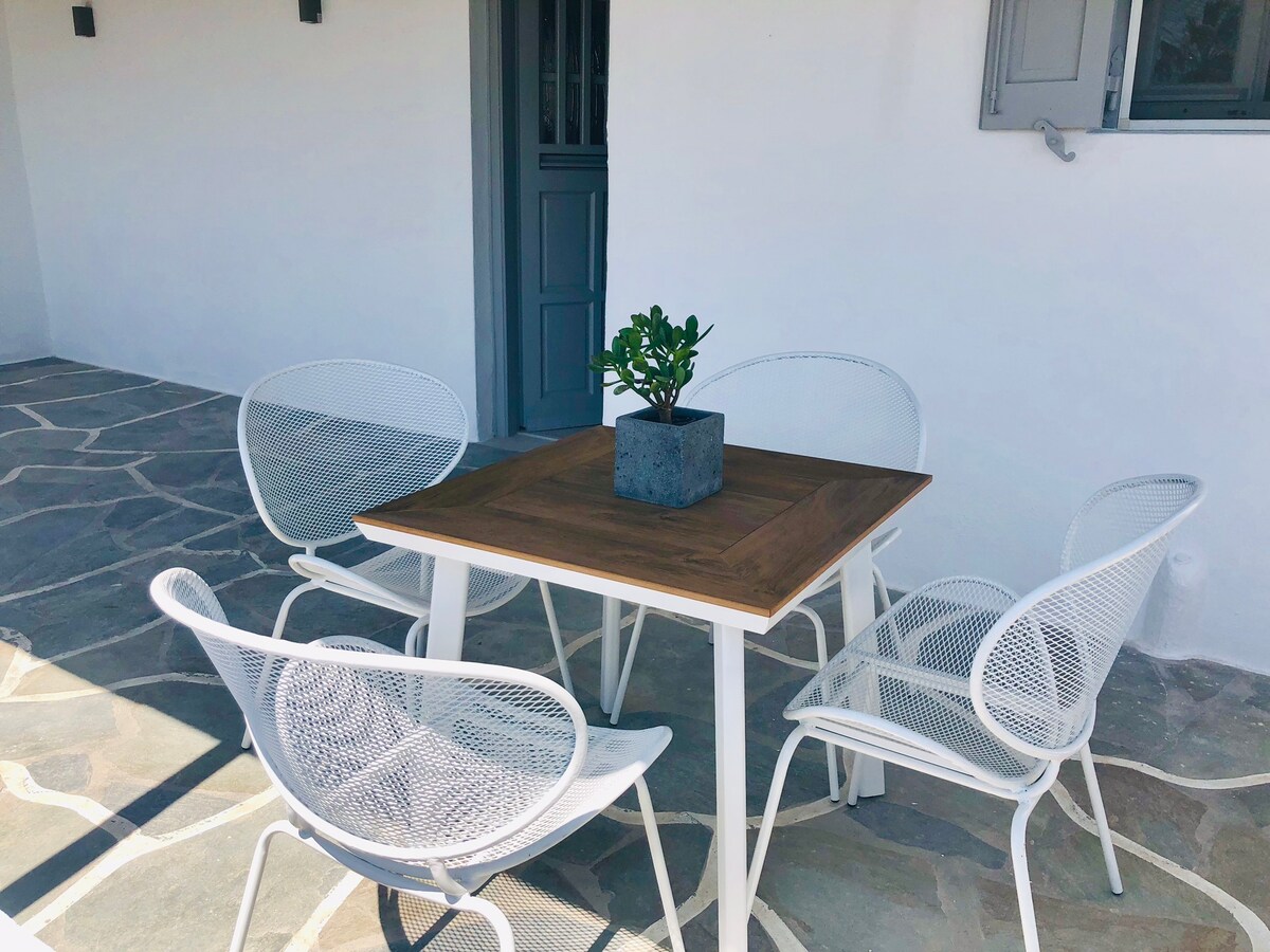 The apartment in a hotel Anemos suite with private pool with step-free access, which is situated in Tinos, overlooks the Aegean Sea. The 95 m² property consists of a living room, a well-equipped kitchen, 1 bedroom and 2 bathrooms and can therefore accommodate 4 people. Additional amenities include high-speed Wi-Fi (suitable for video calls), a TV as well as air conditioning. This vacation rental offers a private outdoor space with a garden, open terrace, and outdoor shower.