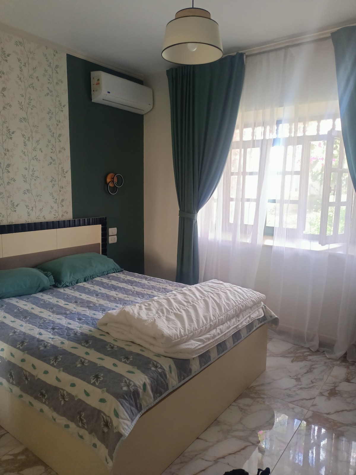 The flat has been fully renovated, it’s two bedrooms and two bathrooms one of them in the master room, the tenants will be entitle to use the compound beach which is footstep down from the compound, it's known as one of the famous dive site in Sharm Elsheikh, the beach has restaurant which serve breakfast, lunch and dinner, and it has beach bar serving all kind of drinks.