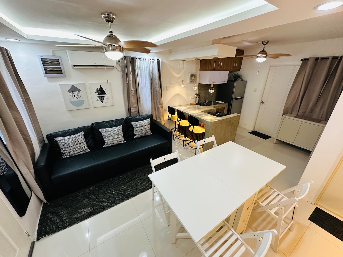 This aesthetic, spacious transient home offers a more comfortable and relaxing experience than a traditional hotel stay. Ideal for groups of up to 5, also offers a convenient stay with all the essentials, including a fully equipped kitchen, comfortable living area, picture perfect dining area, inviting bedrooms with bluetooth lamp speakers, one safe car park, relaxing front balcony, laundry area. Perfect for a memorable getaway , small family celebration, anniversary, prenup shoot and others.