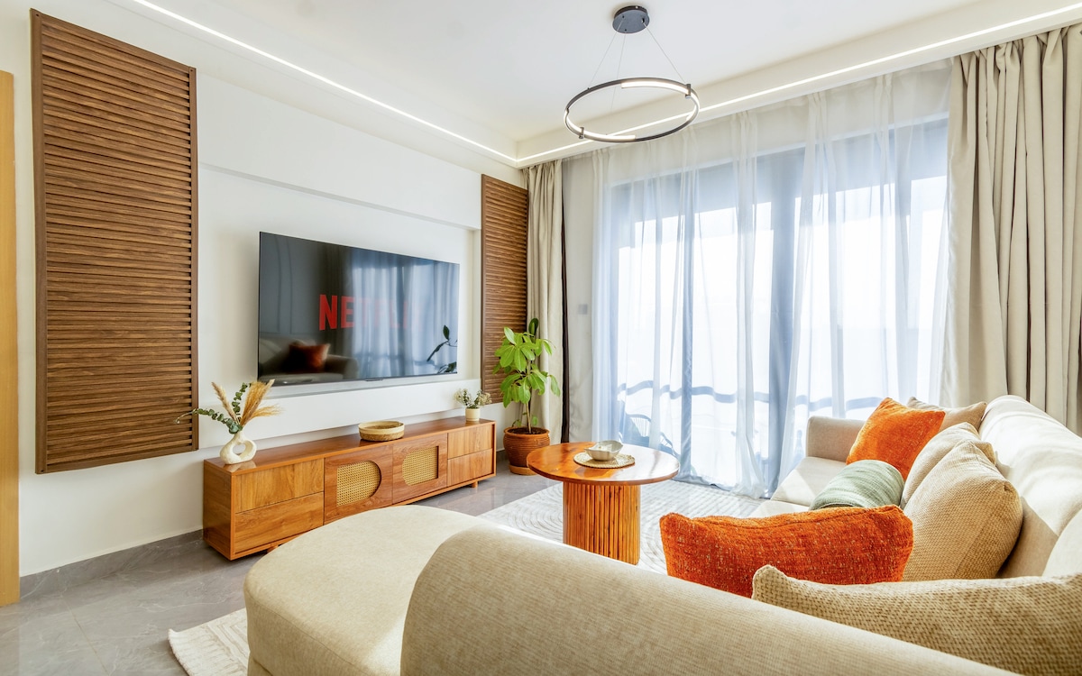 This is our largest unit. It is a massive executive suite in Kilimani with stunning sunset views, perfect for expats, couples, and remote workers. Just 15 minutes from Westlands and 10 minutes to the City Center. Enjoy a dedicated home office with an automatic adjustable desk, super fast Wi-Fi, ergonomic chair, and panoramic city views. Peaceful, secure location with easy access to shops and restaurants. A stylish, comfortable base for both work and leisure in Nairobi.