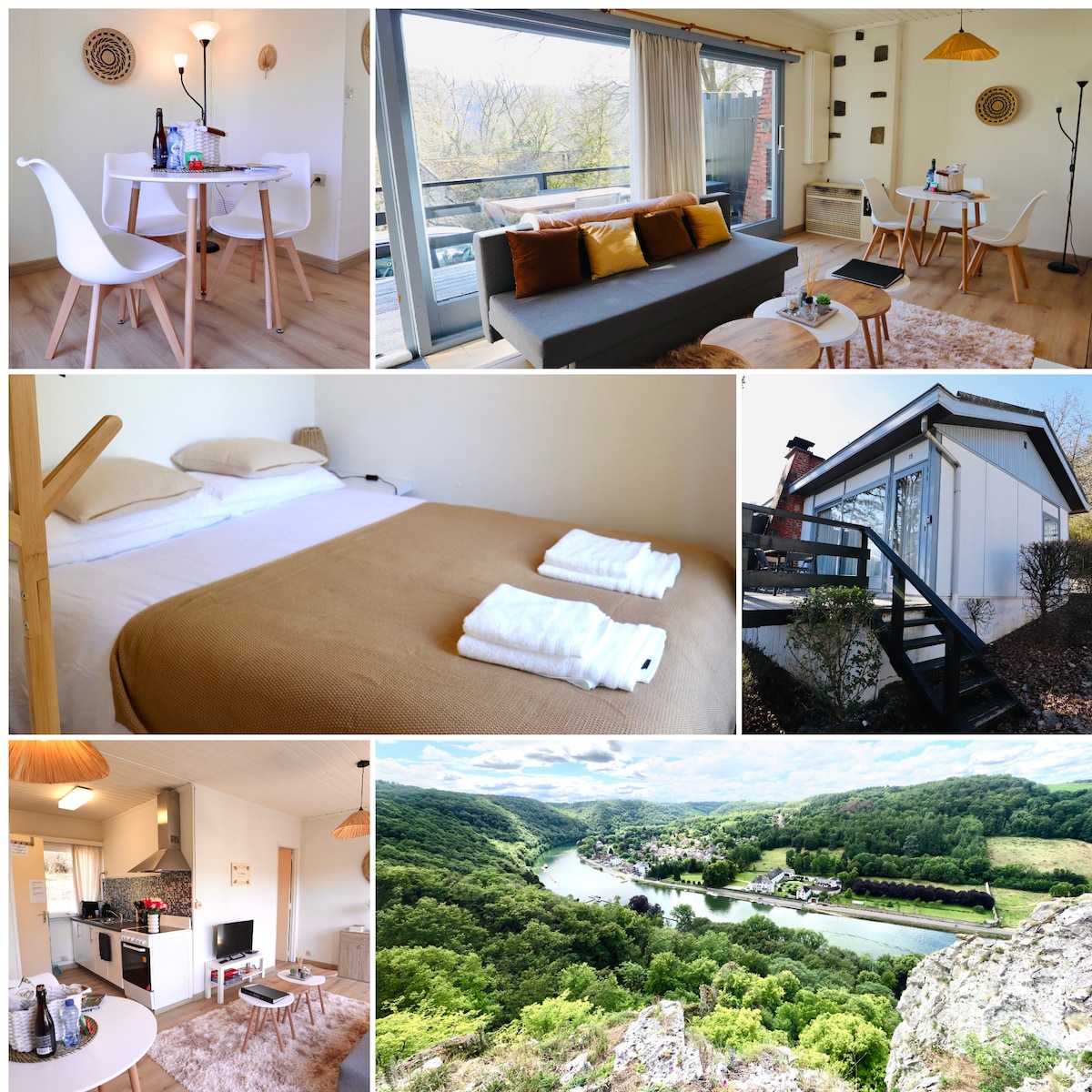 Simplicité et retour aux essentiels, une évasion au coeur de la nature dans ce chalet cosy en bois, cocon rêvé pour les amoureux du calme qui cherchent à se relaxer devant un feu de bois et s’éveiller au chant des oiseaux. Découvrez notre nid 100% autonome (Eau/élec) A 15km de Namur et Dinant, point de départ idéal pour découvrir une région riche en activités & merveilles. Possibilités de balades à travers les bois et campagnes au départ du chalet, Resto & panorama des 7 meuses à 15' à pieds.