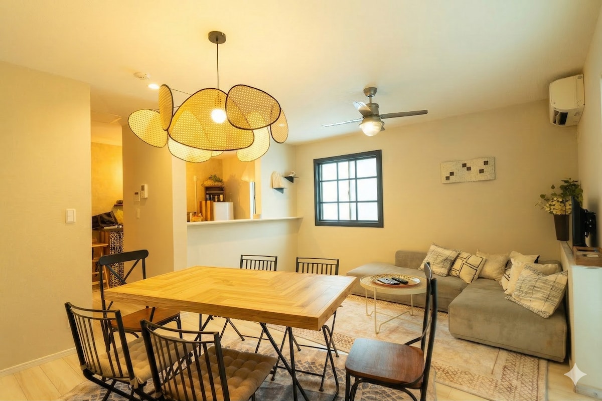那覇空港から車で23分! 沖縄本島糸満市にあるのどかな2階建ての一軒家です。 広々としたリビングルームに、広々お庭が自慢です。 ハンモックもございます。 夜は満天の星空の下みんなで集まって楽しめます。 友達同士はもちろんファミリーでの滞在にピッタリです。 ※お子様用のおもちゃと食器あり※ 周辺には人気観光スポット「琉球ガラス村」(車で6分)や、 星空ウォッチング(天体観測)やシュノーケリングを楽しめる「大度海岸」(徒歩10分)があります。 充実したアクティビティーを楽しめます。 日々の忙しい毎日から解放されて、 充実した沖縄滞在をお楽しみください♪ BBQセット貸し出し(有料)を2026年6月末まで行っております。 ・費用:3,300円 ・チェックインの3日前までに利用のお申し出、お支払いがないと貸し出しができません。 ・食材についてはお客様にご用意して頂く形となります。 ・機材の持ち込みは禁止です。 ★Wi-Fi 完備 ※1Fと2FのSSIDが異なる為、両方登録して頂くことを推奨いたします。 ★玄関への入室はガレージ側から入って頂ければ、車いす入室可