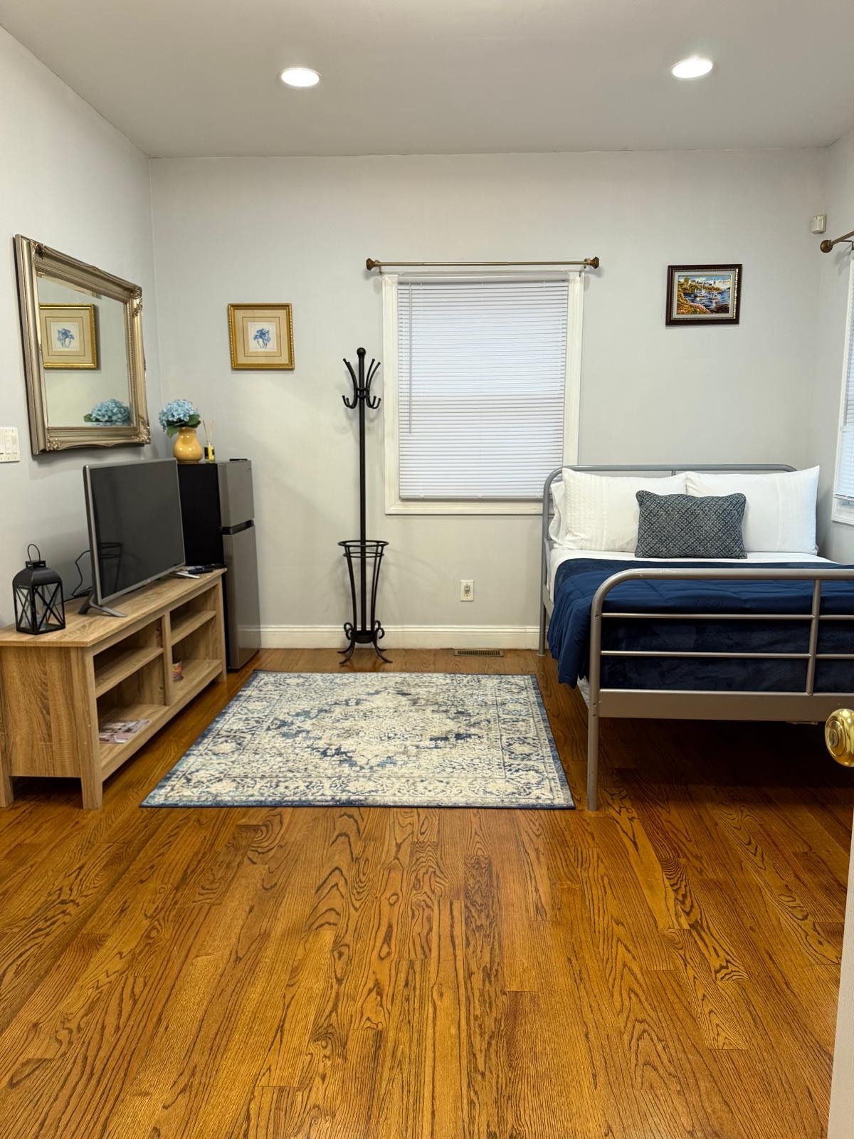 Its coziness will make you feel at home the second you step in. This cute ground floor 280 sq ft Tiny Guest Suite is Fully furnished and nicely decorated - it comes with anything you can possibly imagine. It consist of 1 bedroom 1 bathroom & a kitchen/dining/living room area Rooms' sizes: Bedroom: 10ft x 7 1/2ft LR kitchen DR area: 19ft x 10ft Bath: 40" x 80" Given how close it is from everything - It is perfect for guests who plan on commuting to the city by train or move around by Uber.