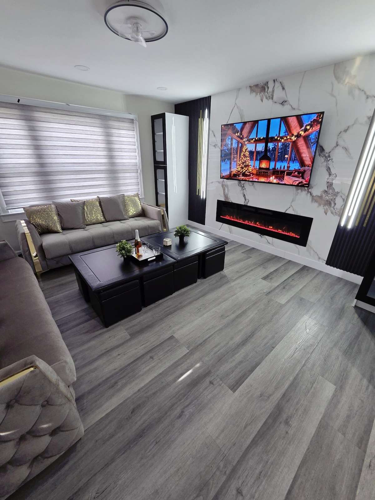 This stylish place to stay is perfect for anyone looking to get away! 3 rooms living room- Bedroom-small workout room. This spacious airbnb comes with fully stocked entertainment system, work out equipment, fire place, super fast wifi. This aribnb is located by prime locations such as 20 mins to jones & long beach, 15 minutes to nautica mile, roosevelt field mall, 10 minutes to Eisenhower Park, 5 mins to Nassau Coliseum, 20 min to USB arena + more. your bathroom is private.