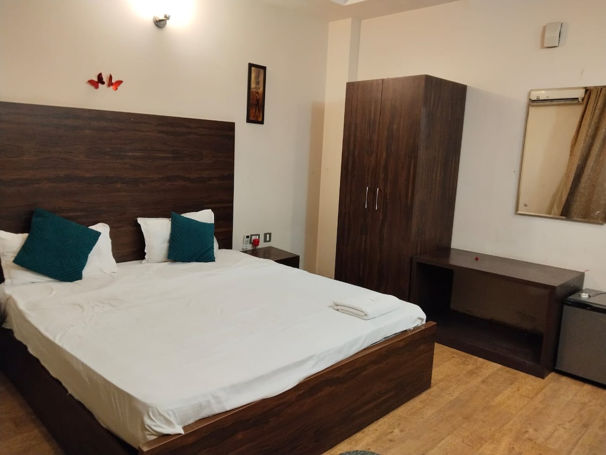 Modern Studio Apartment in Galaxy Blue Sapphire plaza, Greater Noida West Stay in a stylish, fully furnished studio inside Galaxy Blue Sapphire Mall. Perfect for business or leisure, with a cozy bed, WiFi, smart TV, kitchenette, and clean bathroom. Shopping, dining, and entertainment just steps away, plus easy metro and road connectivity. Ideal for solo travelers, couples, or long stays.
