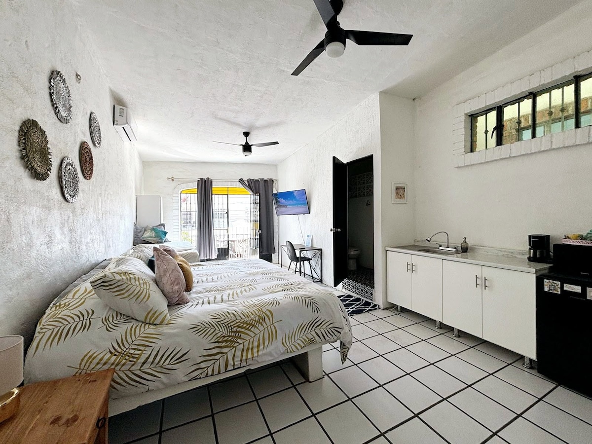 Studio located inside the beachfront hotel in Sayulita; with all the necessary to make the perfect stay in Sayulita: King size bed, Air conditioned, free Super fast Wifi ideal for working online or coworking, Large pool, kids pool, beach front, parking and its best location in Sayulita. The unit does not have ocean view