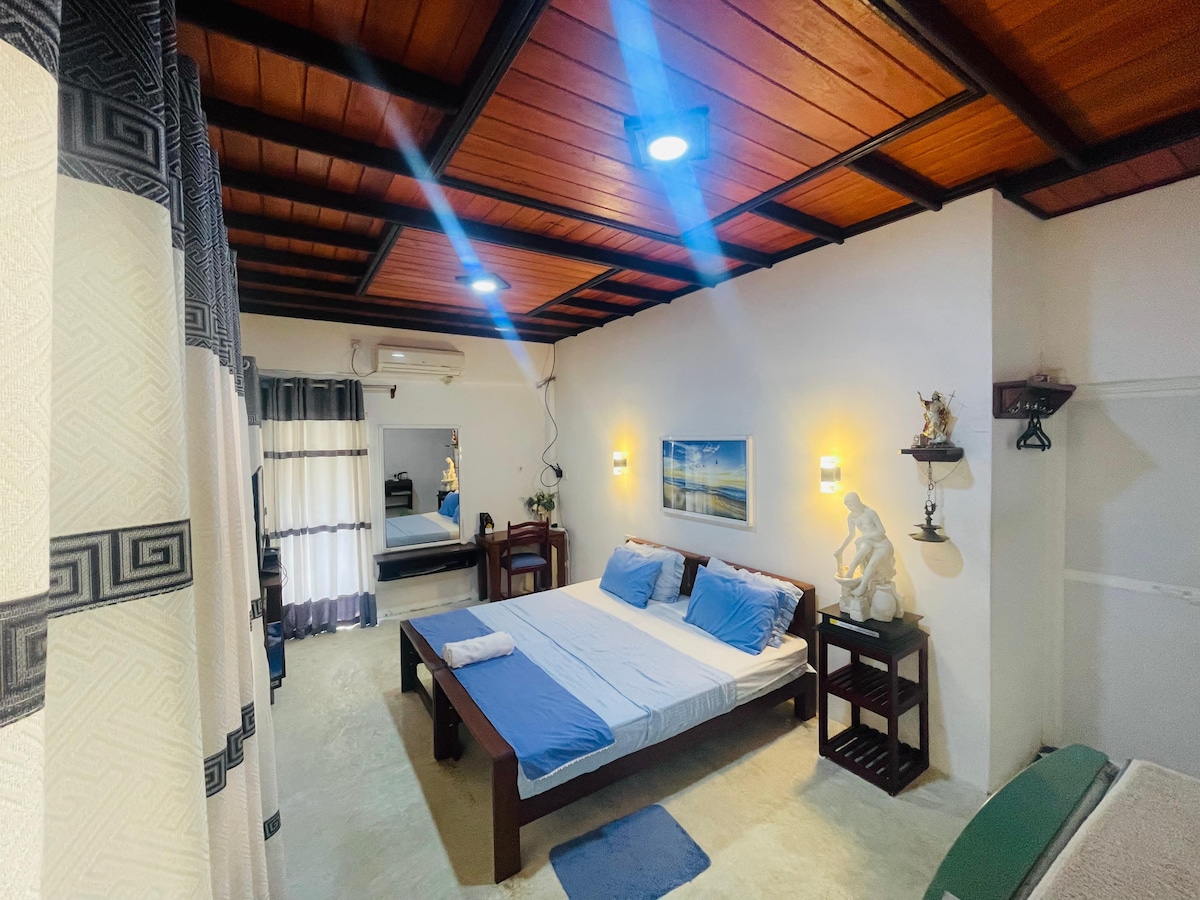 An early morning flight, late arrival, or exploring Sri Lanka’s top beach towns, just 10 mins (5km) from Bandaranaike International Airport. Unwind and reconnect in our cozy, spacious escape, ideal for relaxation or adding a touch of paradise to your trip. Plus, you'll be within reach to Sri Lanka's many cultural and natural wonders. This spacious up stair unit with Wi-Fi & AC is perfect for couples, friends, or solo travelers seeking a comfortable, convenient, and affordable private space